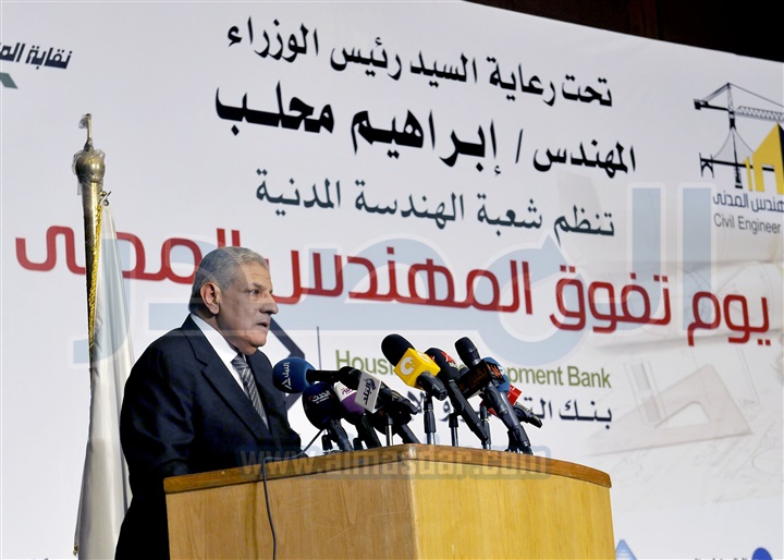 وخاطب محلب شباب المهندسين قائلا: عليكم دور كبير، عليكم ان تضعوا امام اعينكم، محدودية الامكانات، فنحن عندنا تحديات كالجبال، ونقص فى الامكانات، ولذا المفروض ان تكون الكفاءة على اعلى درجة. عندما اصمم مشروعا يجب ان اضع فى مخى سعر طن الحديد، ومتر الخرسانة، لان هذا من قوت الشعب، ونحن نتحدث عن مشروع الاسكان الاجتماعى يجب ان يكون لدينا التجربة المصرية، فى الاسكان، التى نقدر ان نخدم بها كل قارتنا الافريقية.