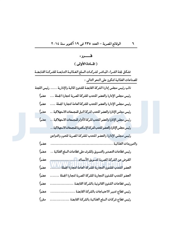 "الوقائع المصرية": قرار تعديلات قوانين وزاره التموين والتجاره الداخليه