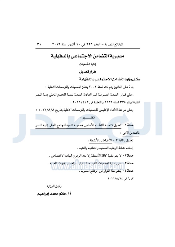 محافظات "التضامن" تقيد وتحل عددا من الجمعيات بالمحافظات الإثنين 10 أكتوبر 2016 - 03:49 م 10/10/2016 3:49:00 PM وزارة التضامن الاجتماعي - أرشيفية المصدر - خاص طباعة شارك نشرت الوقائع المصرية فى العدد رقم 226 الصادر في 10 اكتوبر 2016، قرارات مدريات التضامن الاجتماعي بالمحافظات بشأن قيد وحل وتعديل عدد من الجمعيات.لقراءة القرارات: طباعة شارك وزارة التضامن الاجتماعى الوقائع المصرية الجمعيات الأهلية تابع المصدر علي جوجل نيوز تطبيق نبض