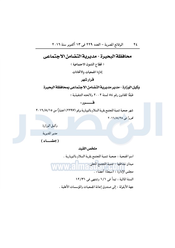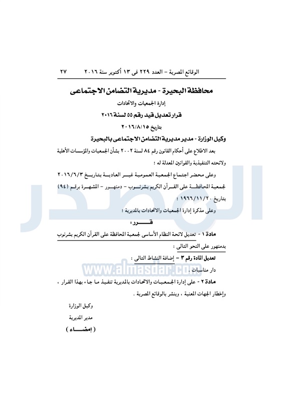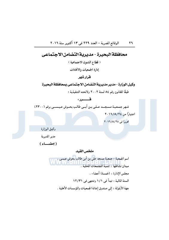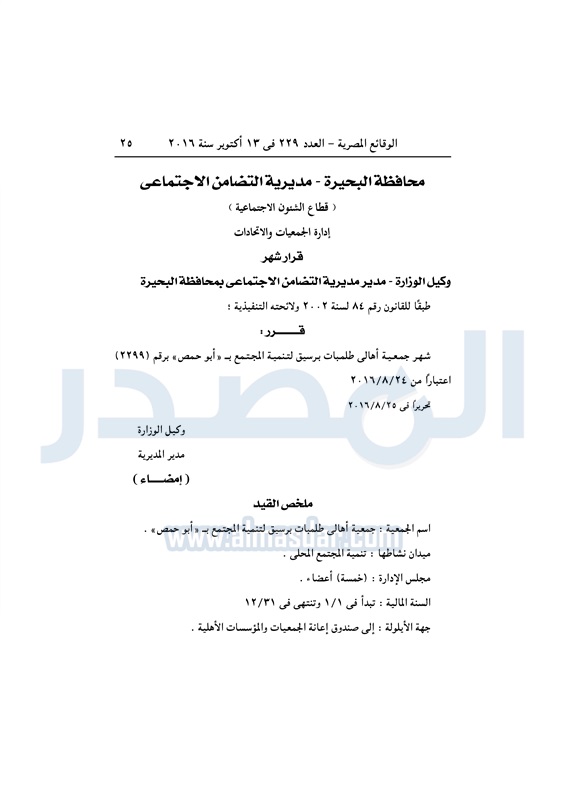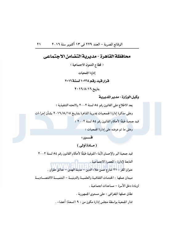 محافظات "التضامن" تقيد وتعدل لوائح عدد من الجمعيات بالمحافظات الخميس 13 أكتوبر 2016 - 02:46 م 10/13/2016 2:46:00 PM وزارة التضامن الاجتماعي - أرشيفية المصدر - خاص طباعة شارك نشرت الوقائع الرسمية في العدد رقم 229 الصادر في 13 أكتوبر 2016، قرارات مدريات التضامن بالمحافظات بشأن تعديل وقيد لائحة عدد من الجمعيات بالمحافظات. لقراءة القرارات: طباعة شارك مديريات التضامن الوقائع المصرية الجمعيات الأهلية التضامن الاجتماعي تابع المصدر علي جوجل نيوز تطبيق نبض