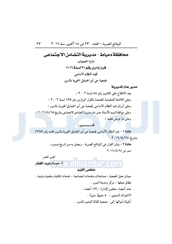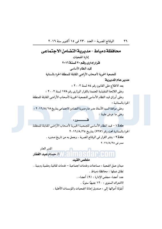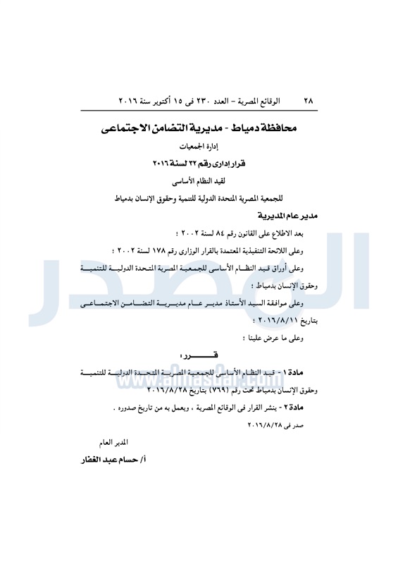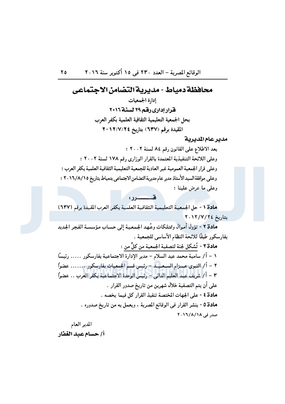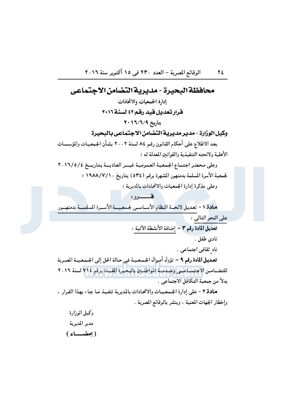 محافظات "التضامن" تقيد وتحل عددا من الجمعيات بالمحافظات الأحد 16 أكتوبر 2016 - 11:06 ص 10/16/2016 11:06:00 AM وزارة التضامن الاجتماعي - أرشيفية المصدر - خاص طباعة شارك نشرت الوقائع المصرية في العدد رقم 230 الصادر في 15 أكتوبر 2016، قرارات مديريات التضامن الاجتماعي بالمحافظات بشأن حل وقيد عدد من الجمعيات.لقراءة القرارت طباعة شارك جمعيات الوقائع المصرية المحافظات التضامن الاجتماعي تابع المصدر علي جوجل نيوز تطبيق نبض