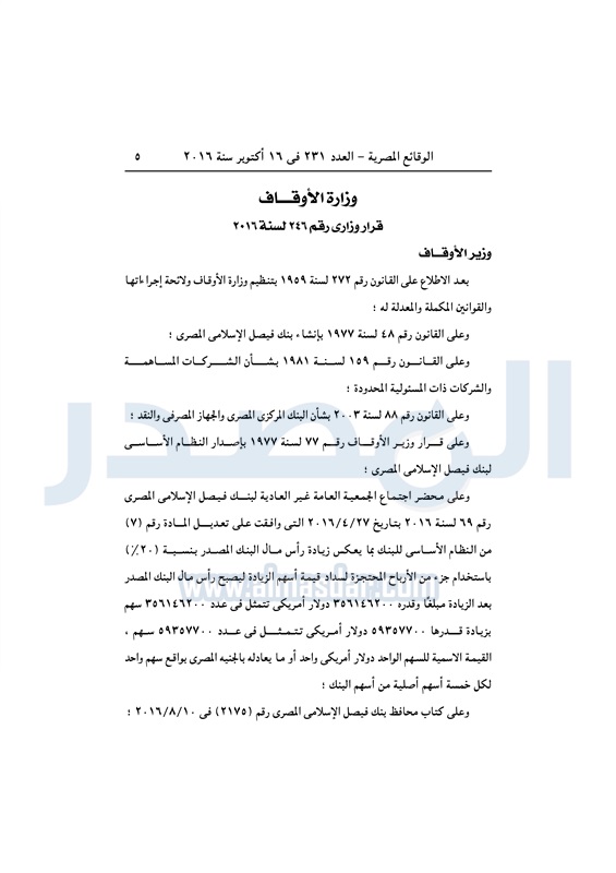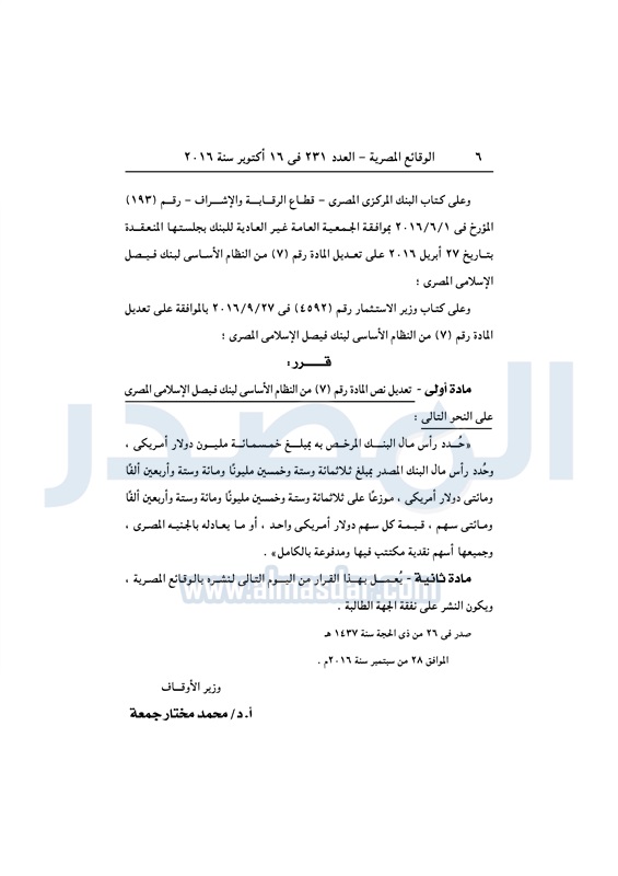 بنوك وزير الأوقاف يعدل مواد النظام الأساسي لبنك فيصل الإسلامي الأحد 16 أكتوبر 2016 - 12:37 م 10/16/2016 12:37:00 PM محمد مختارجمعة - وزير الأوقاف المصدر - خاص طباعة شارك نشرت الوقائع المصرية في العدد رقم 231 الصادر في 16 أكتوبر 2016، قرار وزارة الأوقاف رقم 426 لسنة 2016، بشأن تعديل نص المادة رقم 7 من النظام الأساسي لبنك فيصل الإسلامي.لقراءة القرار: طباعة شارك وزير الاوقاف مختار جمعة بنك فيصل الوقائع المصرية البنك الاسلامي الاوقاف تابع المصدر علي جوجل نيوز تطبيق نبض