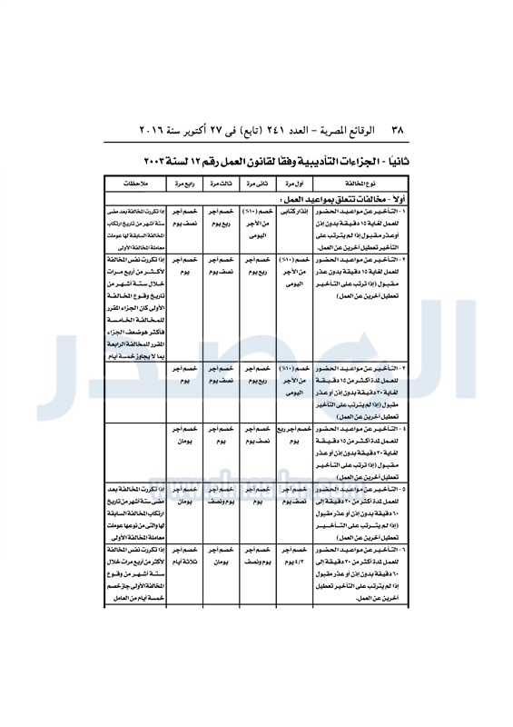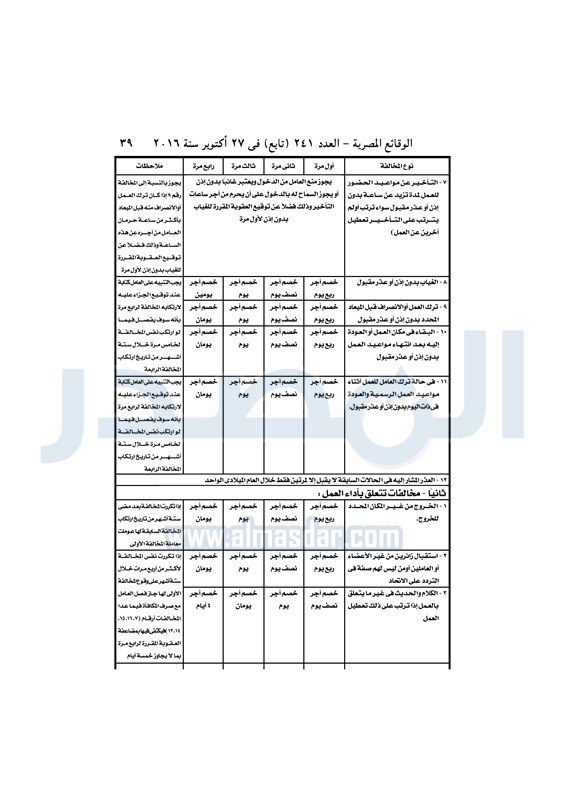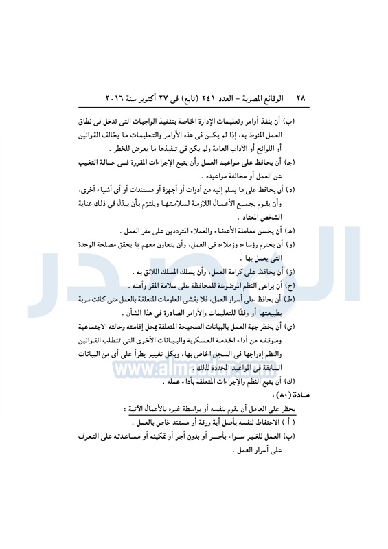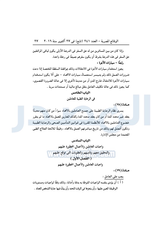 نشرت الوقائع المصرية في العدد رقم 241 "تابع" الصادر في 27 أكتوبر 2016، قرار وزارة الإسكان رقم 615 لسنة 206، بشأن إصدار لائحة تنظيم شئون العاملين بالاتحاد المصري لمقاولي التشييد والبناء.