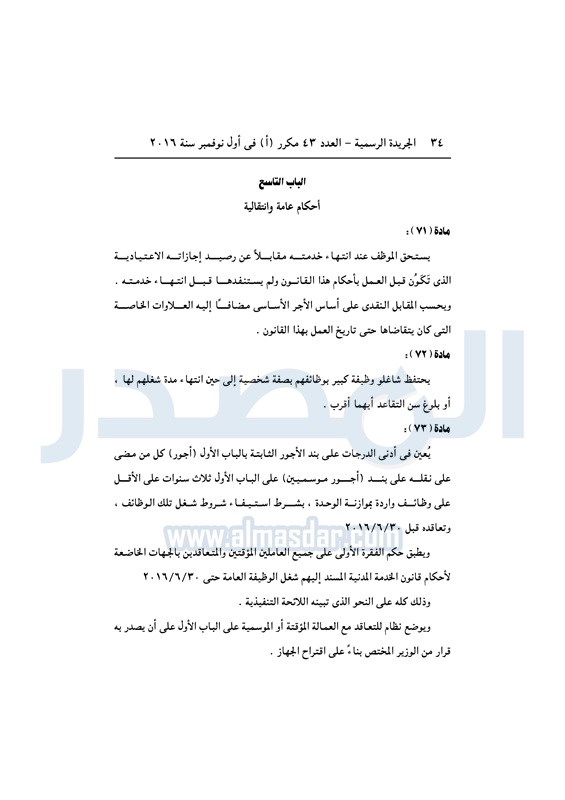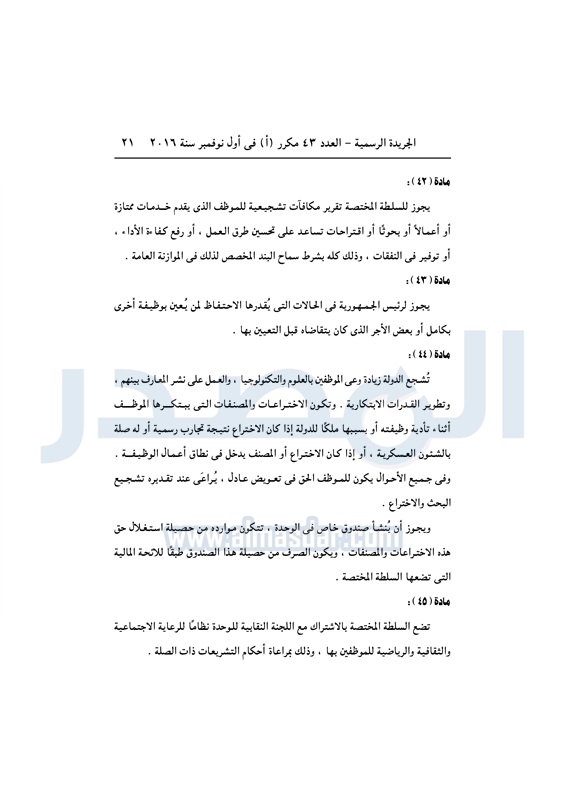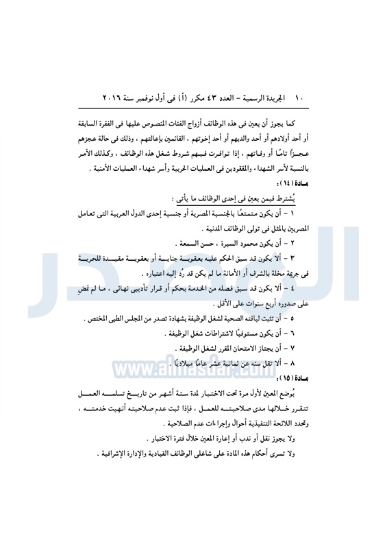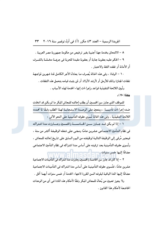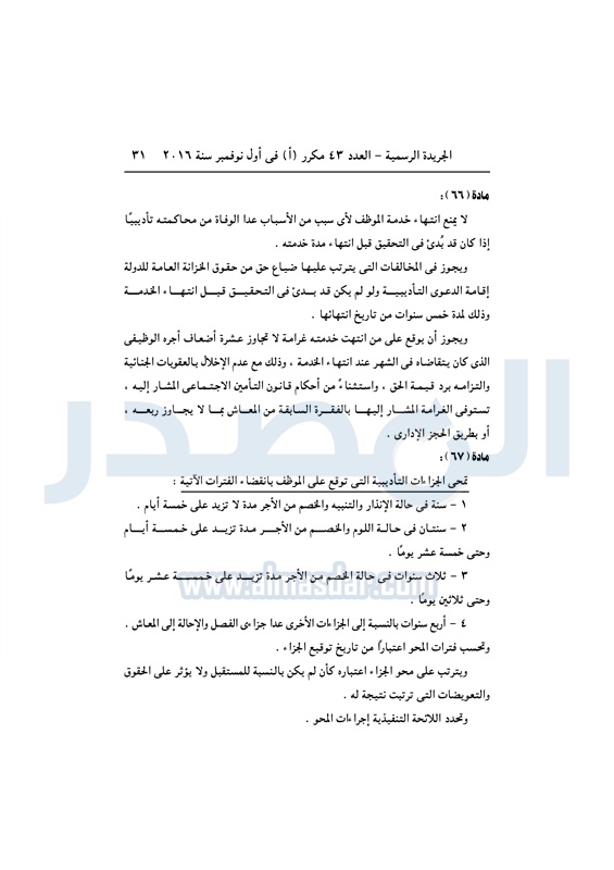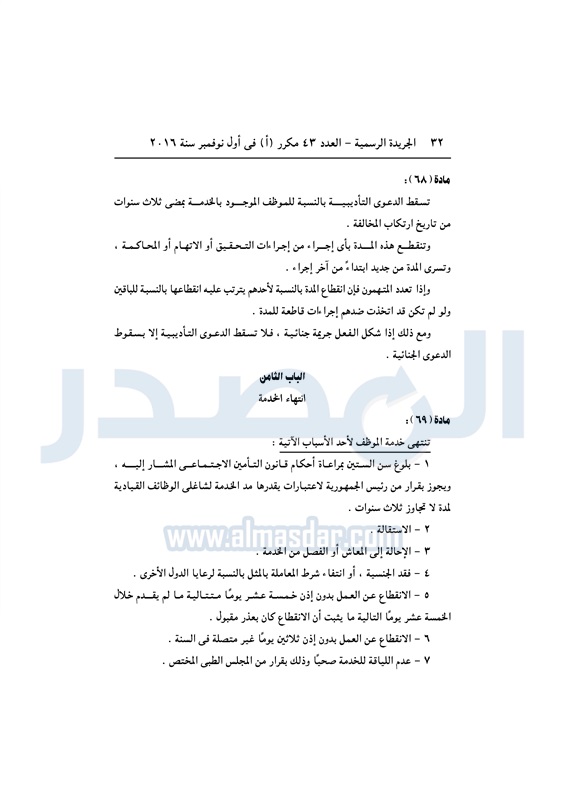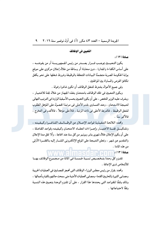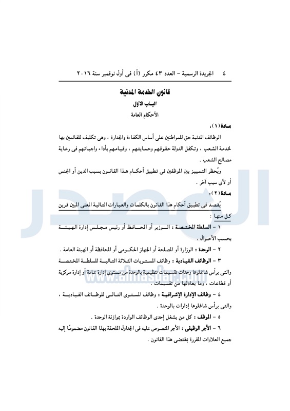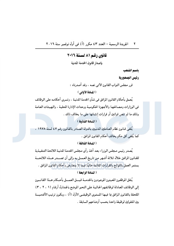 أخبار مصر السيسي يصدر قانون الخدمة المدنية بعد موافقة مجلس النواب الأربعاء 02 نوفمبر 2016 - 05:50 م 11/2/2016 5:50:00 PM الرئيس عبد الفتاح السيسى المصدر - خاص طباعة شارك نشرت الجريدة الرسمية في العدد رقم 43 مكرر "أ" لسنة 2016، الصادر في 1 نوفمبر 2016 قرار رئيس الجمهورية رقم 81 لسنة 2016، بشأن إصدار قانون الخدمة المدنية. لقراءة القرار: طباعة شارك قانون الخدمة المدنية السيسى الخدمة المدنية الجريدة الرسمية تابع المصدر علي جوجل نيوز تطبيق نبض