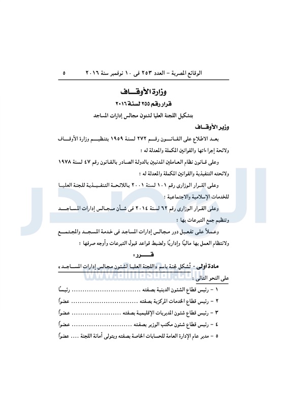 محافظات الأوقاف تشكل لجنة عليا لشئون إدارات المساجد الخميس 10 نوفمبر 2016 - 12:41 م 11/10/2016 12:41:00 PM محمد مختارجمعة - وزير الأوقاف المصدر - خاص طباعة شارك نشرت الوقائع المصرية في العدد رقم 253 الصادر في 10 نوفمبر 2016، قرار وزارة الأوقاف رقم 255 لسنة 2016، بشأن تكشيل اللجنة العليا لشئون مجالس إدارات المساجد.لقراءة القرار: طباعة شارك وزير الاوقاف وزارة الاوقاف الوقائع المصرية المساجد الاوقاف تابع المصدر علي جوجل نيوز تطبيق نبض