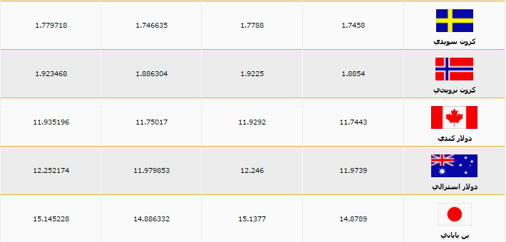 ووفقا لتعاملات البنك الأهلي المصري، سجل الجنيه الإسترليني 19,91 جنيه للشراء، و20,34 جنيه للبيع، أما متوسط سعر الفرنك السويسري بلغ 16,06 جنيه للشراء، و16,32 جنيه للبيع، أما بالنسبة للعملات العربية بلغ الريال السعودي 4,23 جنيه للشراء، و4,27 جنيه للبيع، وسجل الدينار الكويتي 52,37 جنيه للشراء، و53,02 جنيه للبيع، وبلغ متوسط سعر الدرهم الإماراتي 4,32 جنيه للشراء، و4,36 جنيه للبيع.