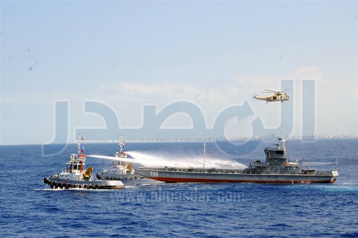 كما تضمنت المناورة صدور إشارة إستغاثة بنشوب حريق بإحدى السفن التجارية وخروج الحريق عن السيطرة ، وفى توقيت قياسى تم دفع 2 من القطع البحرية للمعاونة فى إنقاذ السفينة المنكوبة ومكافحة الحريق .