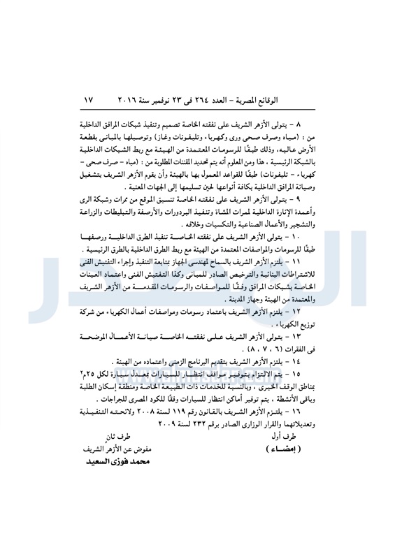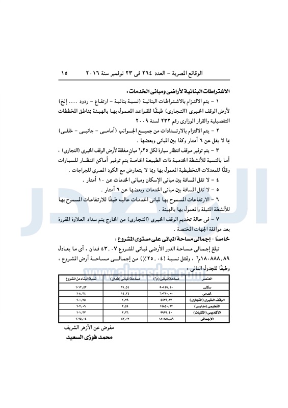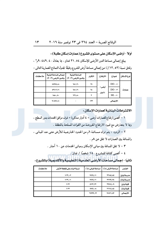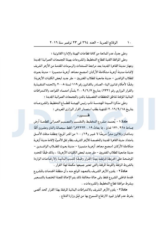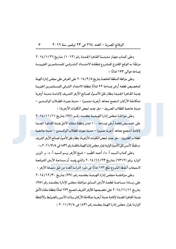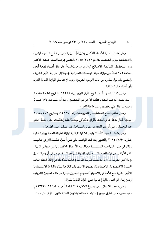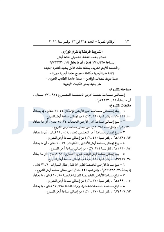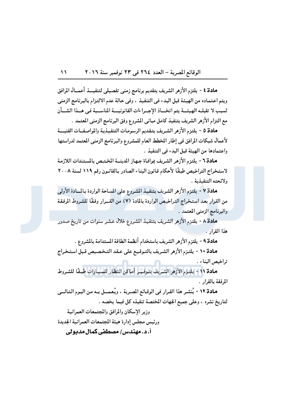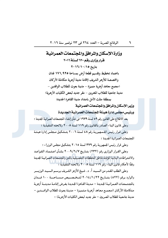 عقارات "الإسكان" تخصص قطعة أرض لإقامة مدينة أزهرية متكاملة الأربعاء 23 نوفمبر 2016 - 11:56 ص 11/23/2016 11:56:00 AM مصطفى مدبولي - وزير الإسكان المصدر - خاص طباعة شارك نشرت الوقائع المصرية فى العدد رقم 264 الصادر في 23 نوفمبر 2016، قرار وزارة الإسكان رقم 620 لسنة 2016، بشأن تخصيص قطعة أرض لإقامة مدينة أزهرية متكاملة بالقاهرة الجديدة.لقراءة القرار: طباعة شارك وزير الإسكان مصطفى مدبولى مدينة الأزهر الوقائع المصرية القاهره الجديده الازهر الإسكان أراضى الدولة تابع المصدر علي جوجل نيوز تطبيق نبض