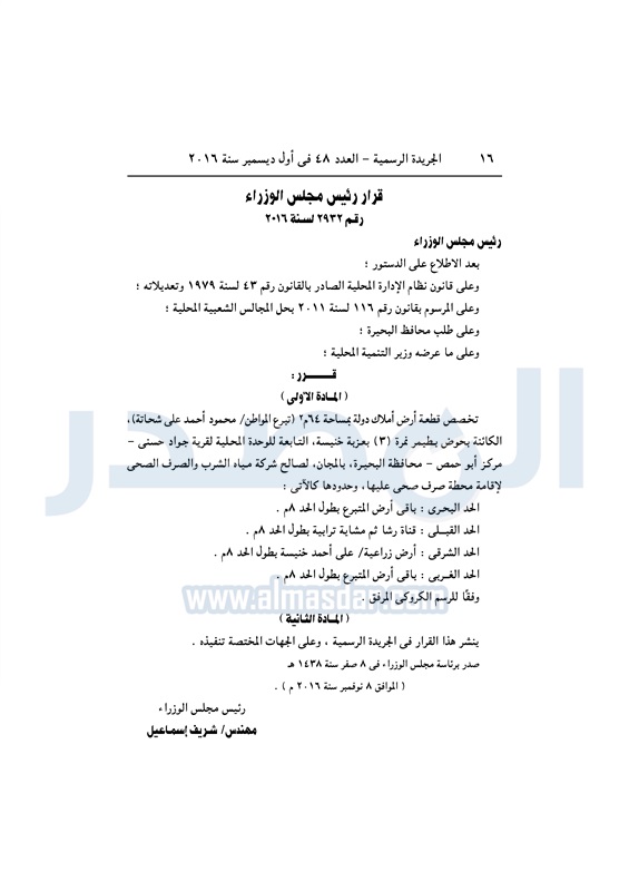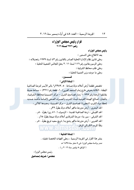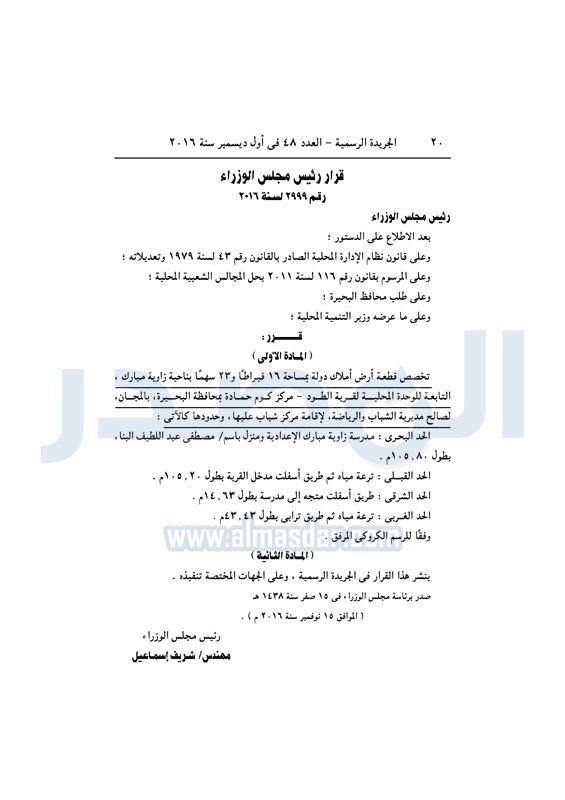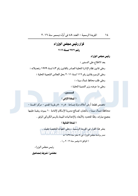 محافظات رئيس الوزراء يخصص قطع أراضي لعدد من الجهات الخميس 01 ديسمبر 2016 - 11:55 ص 12/1/2016 11:55:00 AM شريف إسماعيل رئيس الوزراء المصدر - خاص طباعة شارك نشرت الجريدة الرسمية في العدد رقم 48 الصادر في 1 ديسمبر 2016، قرارات رئيس مجلس الوزراء بشأن تخصيص أراض لعدد من الجهات.لقراءة القرارات: طباعة شارك شريف اسماعيل رئيس الوزراء الجريدة الرسمية أراضى الدولة تابع المصدر علي جوجل نيوز تطبيق نبض