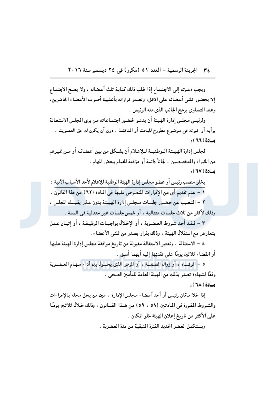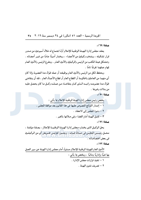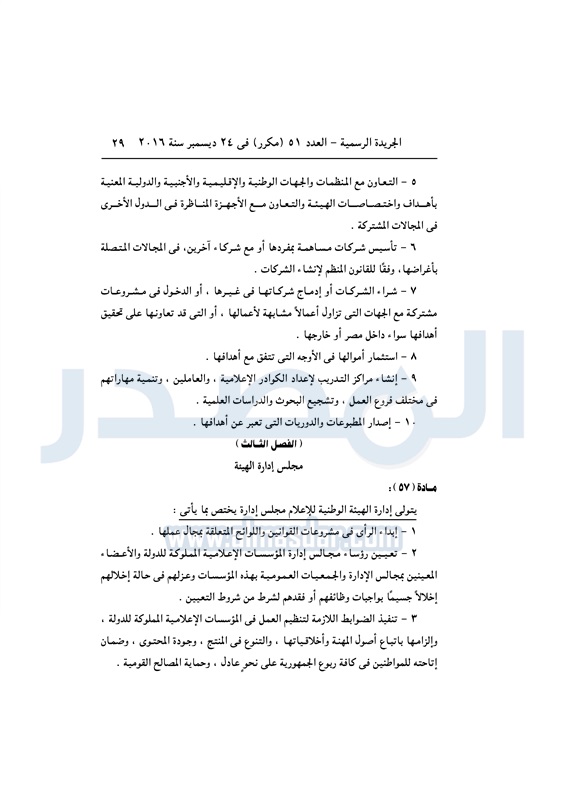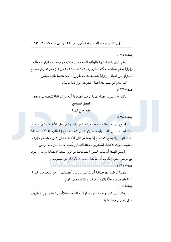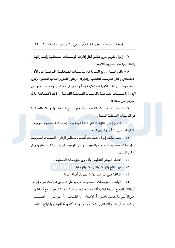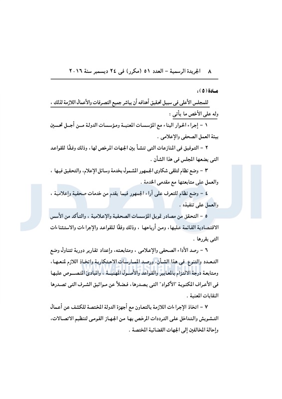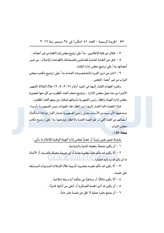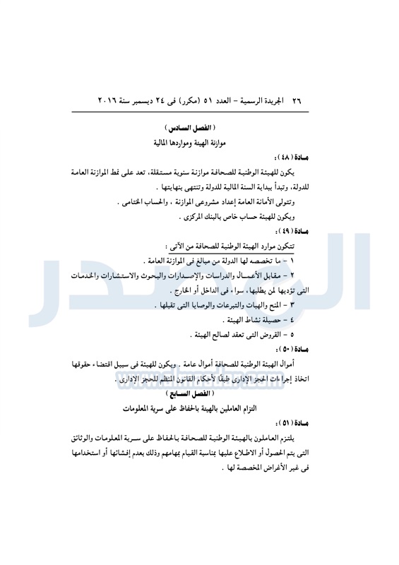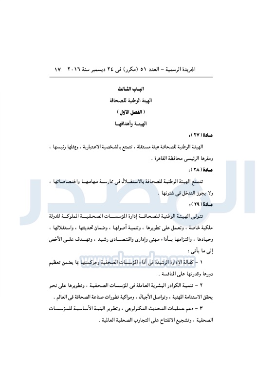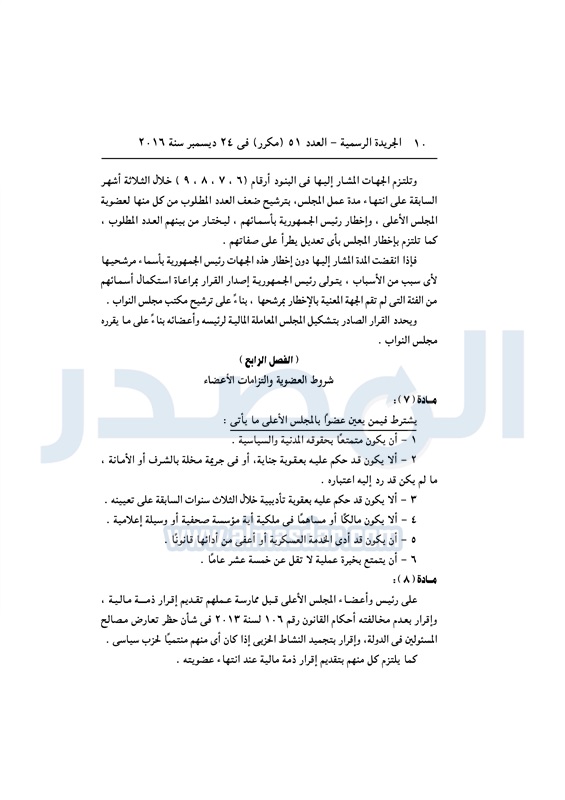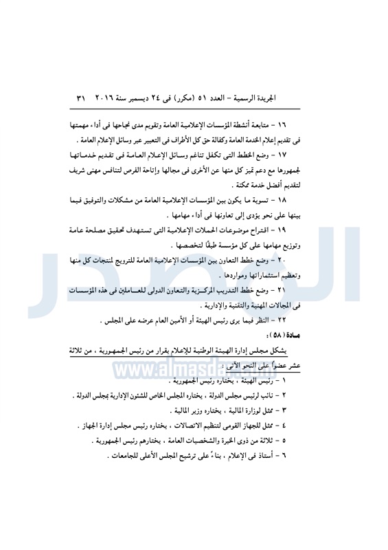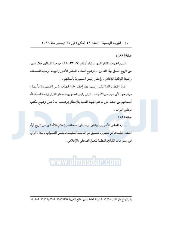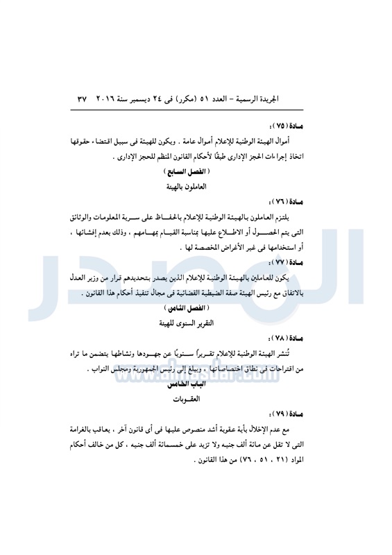 أخبار مصر السيسى يصدر قانون التنظيم المؤسسي للصحافة والإعلام الإثنين 26 ديسمبر 2016 - 07:09 م 12/26/2016 7:09:00 PM الرئيس عبد الفتاح السيسى المصدر - خاص طباعة شارك نشرت الجريدة الرسمية في العدد رقم 51 مكرر الصادر في 24 ديسمبر 2016، قرار رئيس الجمهورية رقم 92 لسنة 2016، بإصدار قانون التنظيم المؤسسي للصحافة والإعلام.لقراءة القرار: طباعة شارك رئيس الجمهورية الصحافة والاعلام السيسى الجريدة الرسمية تابع المصدر علي جوجل نيوز تطبيق نبض