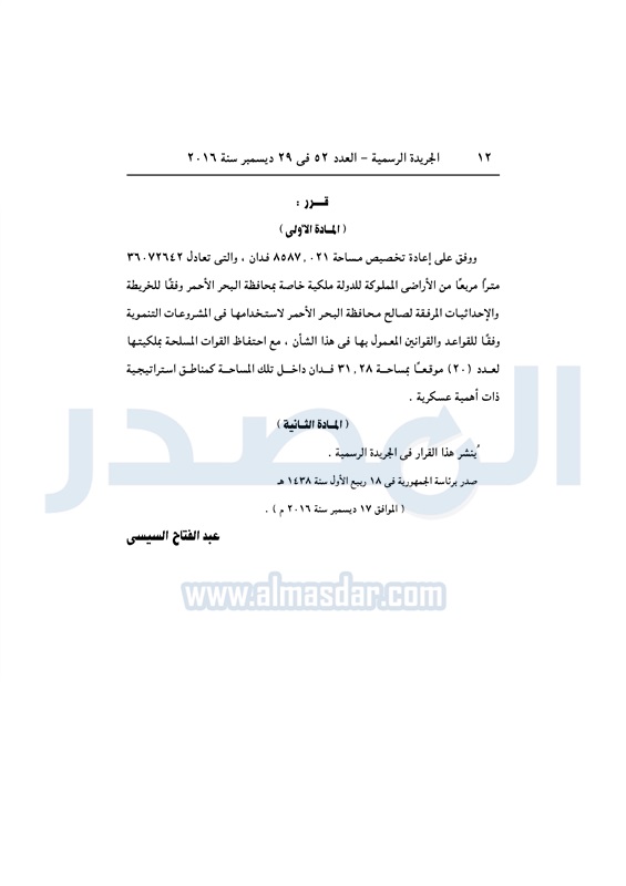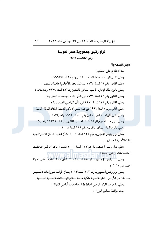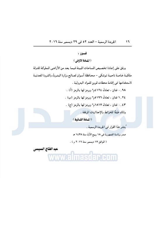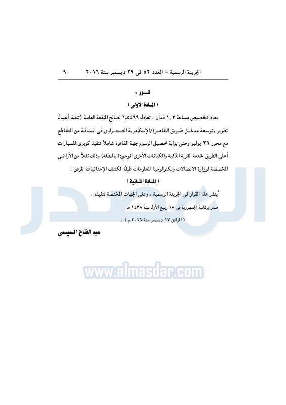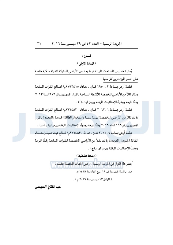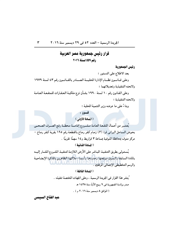 عقارات السيسي يخصص عددا من الأراضي لصالح المنفعة العامة الخميس 29 ديسمبر 2016 - 10:08 ص 12/29/2016 10:08:52 AM عبد الفتاح السيسي رئيس الجمهورية المصدر - خاص طباعة شارك نشرت الجريدة الرسمية في العدد رقم 52 الصادر في 29 ديسمبر 2016، قرارات رئيس الجمهورية بشأن تخصيص عدد من الأراضي لصالح المنفعة العاملة لإقامة عدد من المشروعات. لقراءة القرارات: طباعة شارك قرارات جمهورية المنفعة العامة المشروعات التنموية السيسى الجريدة الرسمية تابع المصدر علي جوجل نيوز تطبيق نبض