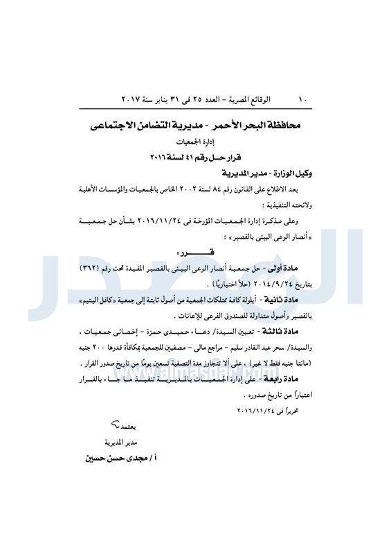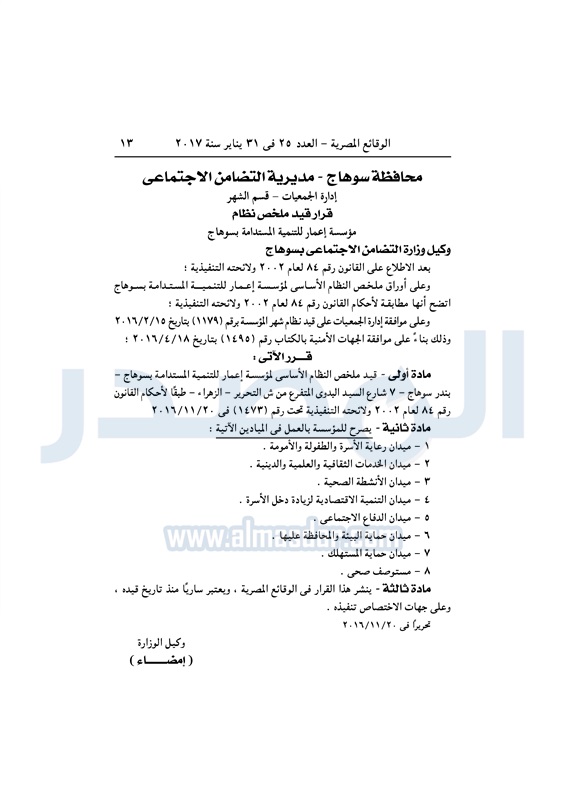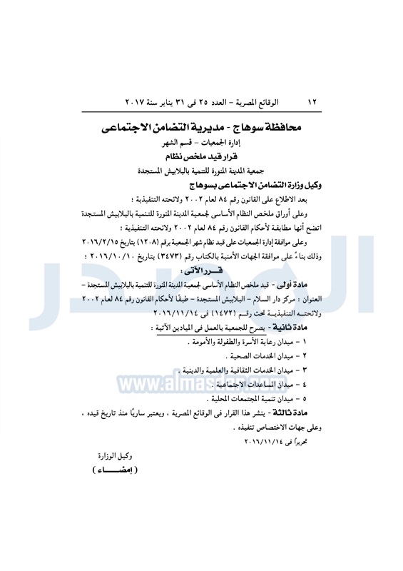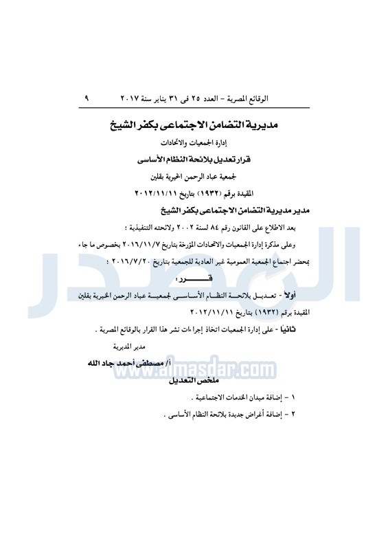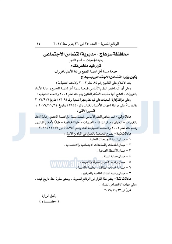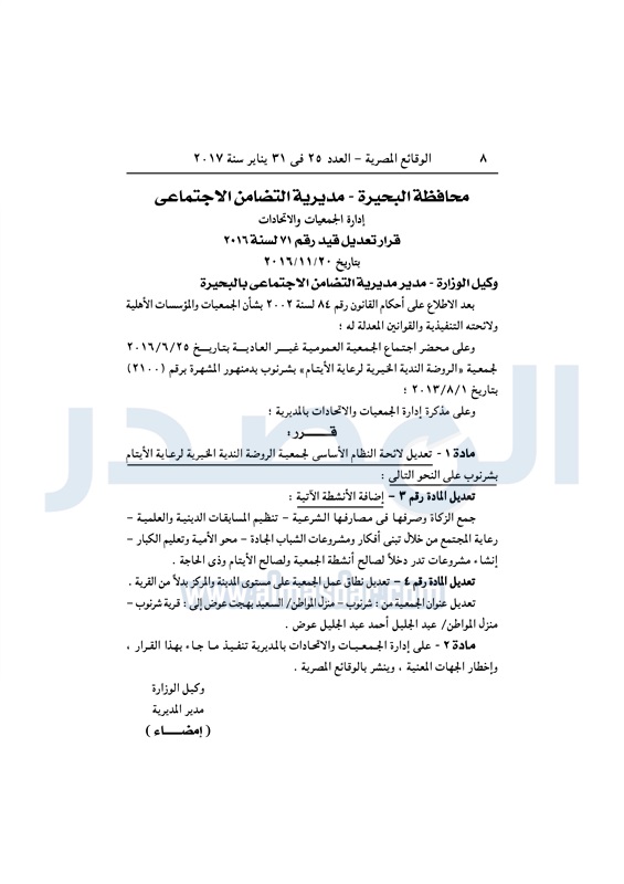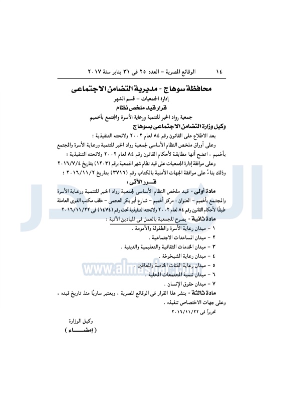 محافظات "التضامن" تقيد وتشهر عددا من الجمعيات بالمحافظات الثلاثاء 31 يناير 2017 - 11:39 ص 1/31/2017 11:39:19 AM وزارة التضامن الاجتماعي - أرشيفية المصدر - خاص طباعة شارك نشرت الوقائع المصرية في العدد رقم 25 الصادر في 31 يناير 2017، قرارات مديريات التضامن الاجتماعي بالمحافظات، بشأن إشهار وتعديل لوائح وقيد وعدد من الجمعيات.لقراءة القرارات: طباعة شارك وزارة التضامن الوقائع المصرية المحافظات الجمعيات الأهلية تابع المصدر علي جوجل نيوز تطبيق نبض