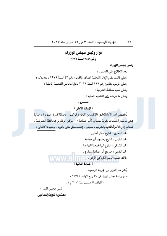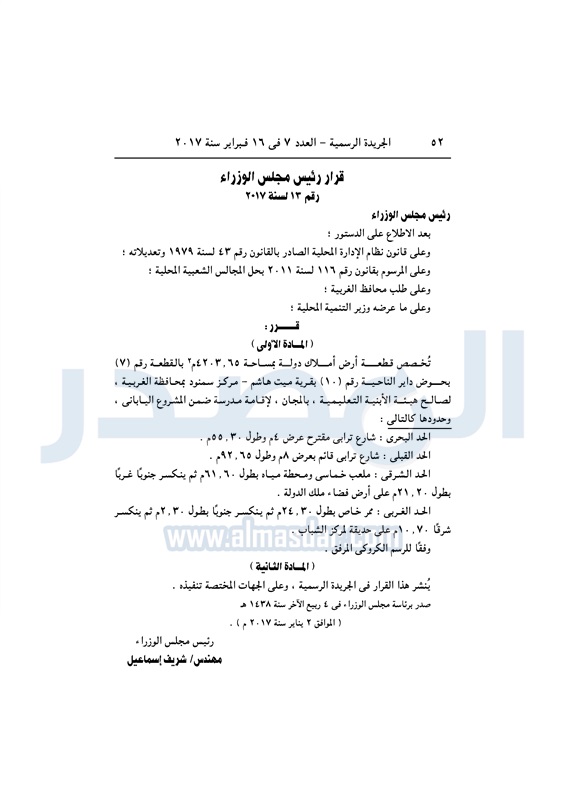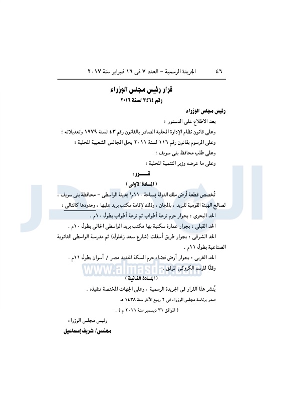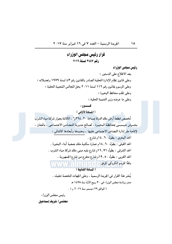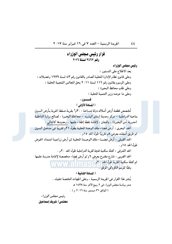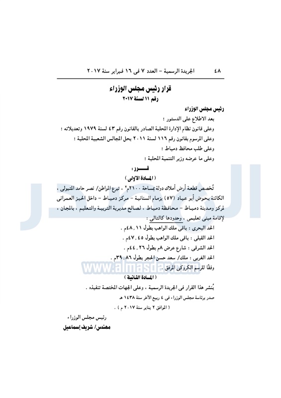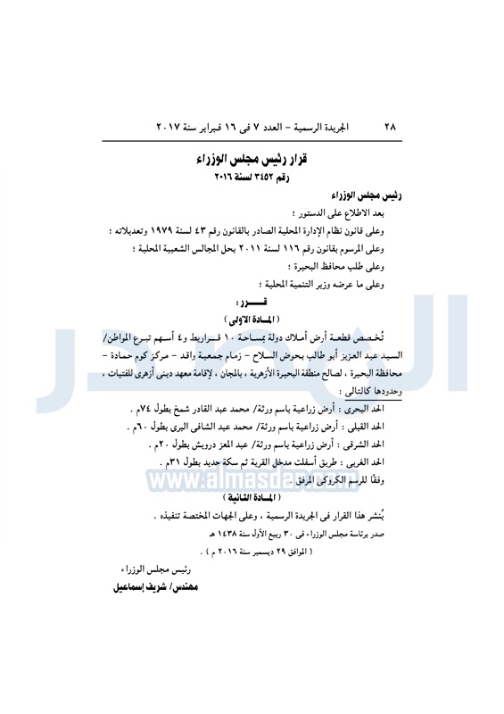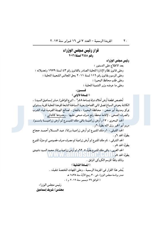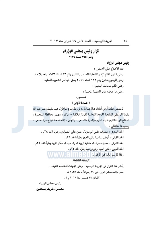 عقارات رئيس الوزراء يخصص قطع أراضي لعدد من الجهات الخميس 16 فبراير 2017 - 01:17 م 2/16/2017 1:17:21 PM شريف إسماعيل رئيس الوزراء المصدر - خاص طباعة شارك نشرت الجريدة الرسمية في العدد رقم 7 الصادر في 16 فبراير 2017، قرارات رئيس مجلس الوزارء، بشأن تخصيص قطع أراضي لعدد من الجهات.لقراءة القرارات: طباعة شارك شريف اسماعيل رئيس الوزراء الجريدة الرسمية أراضى الدولة تابع المصدر علي جوجل نيوز تطبيق نبض
