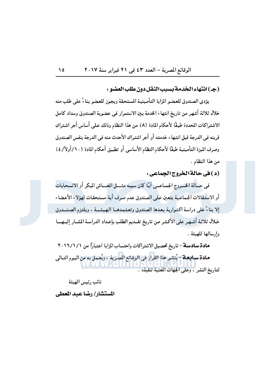 نشرت الوقائع المصرية في العدد رقم 43 الصادر في 21 فبراير 2017، قرار الهيئة العامة للرقابة المالية رقم 6 لسنة 2017، بشأن تسجيل صندوق التأمين الخاص للعاملين بالغرفة التجارية المصرية بمحافظة بورسعيد.