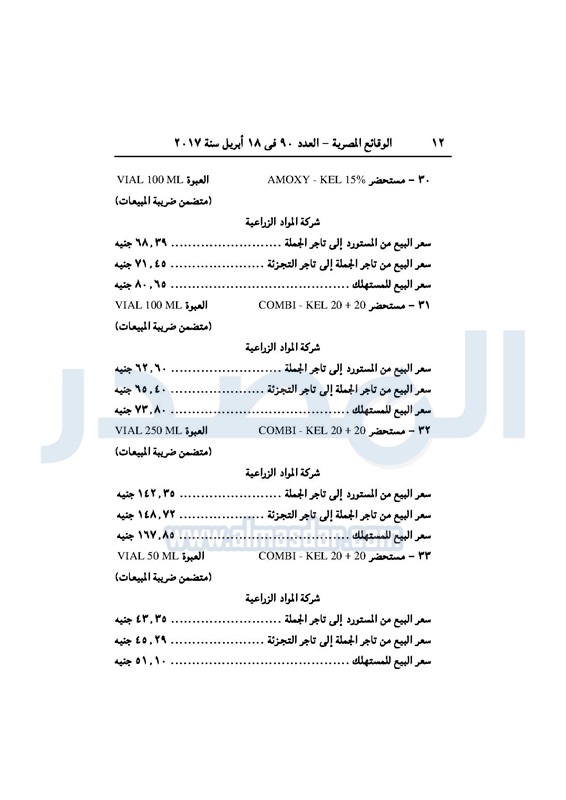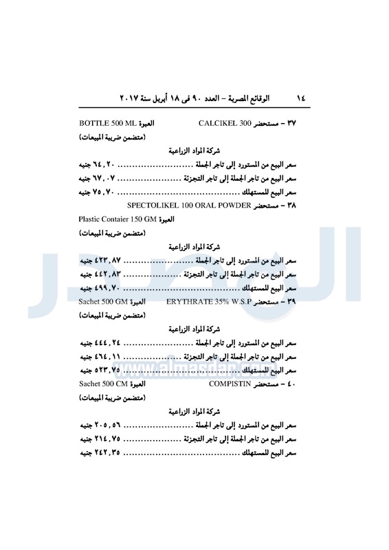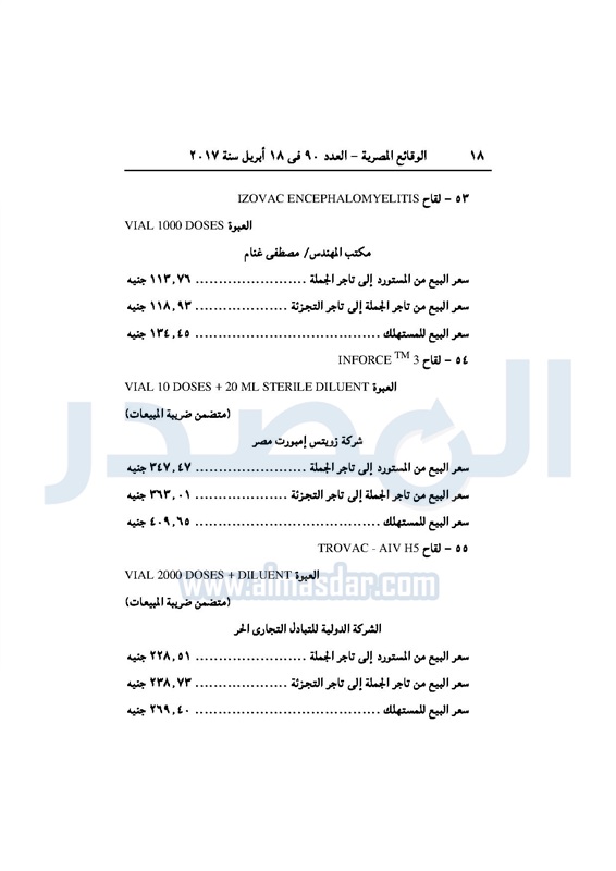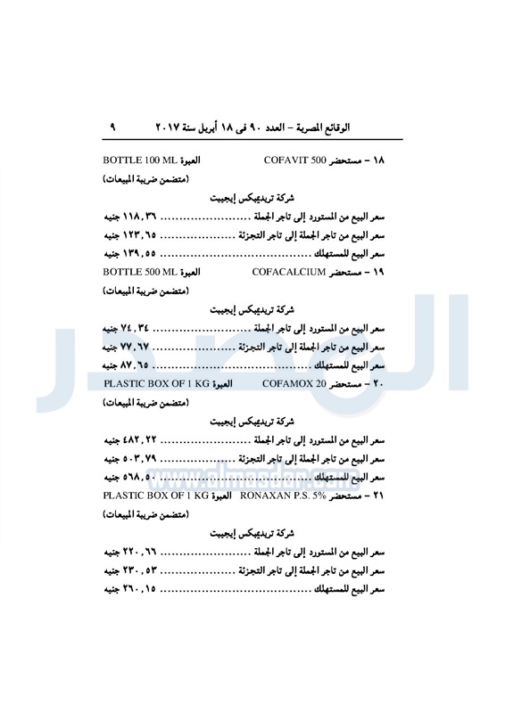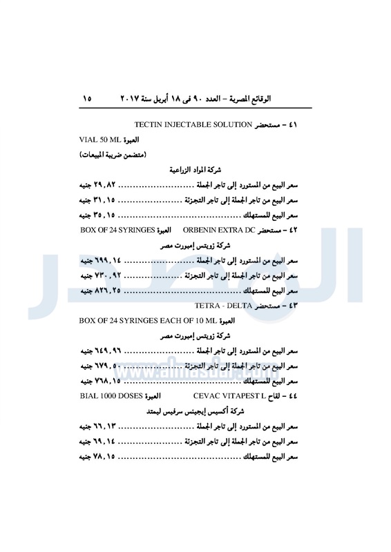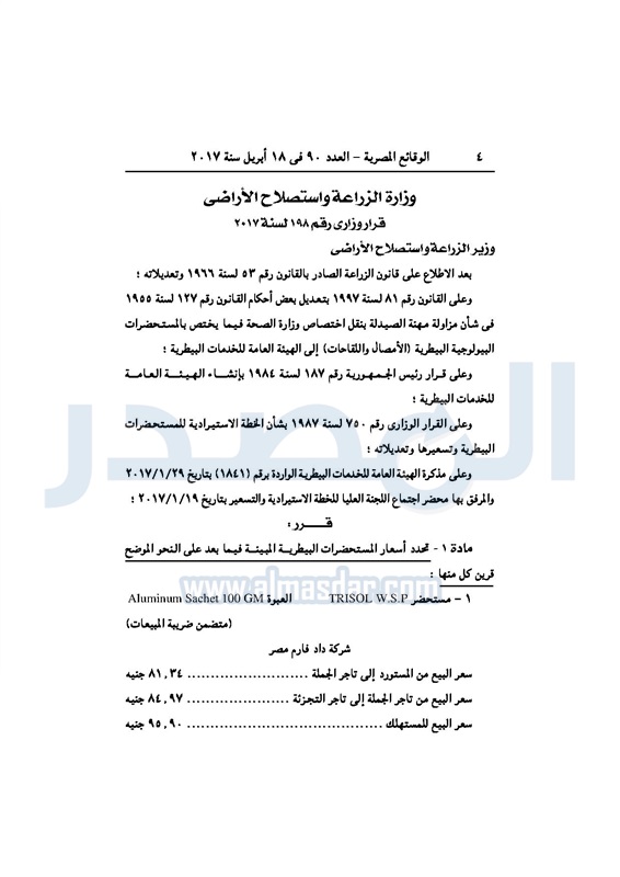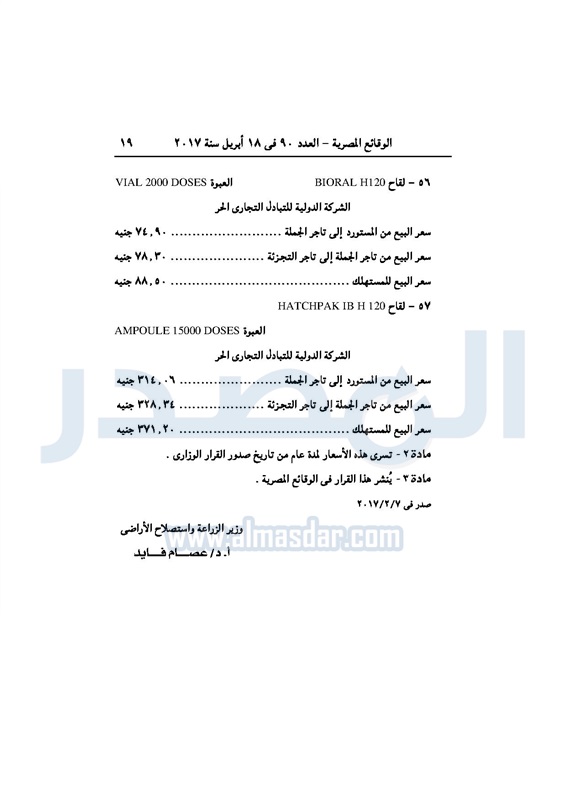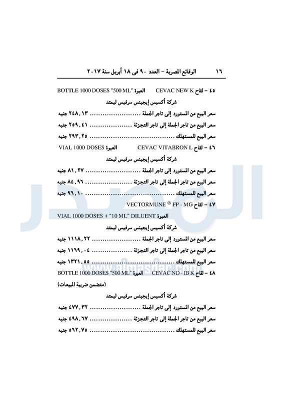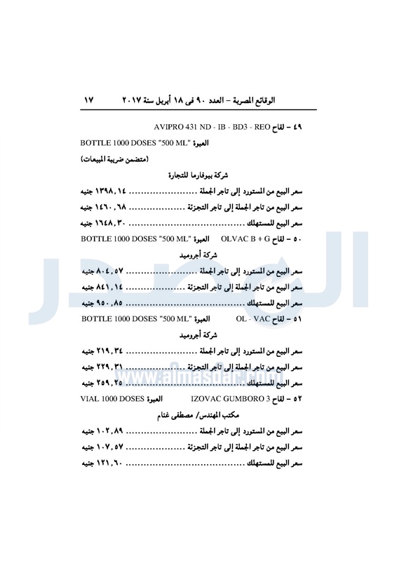 أخبار مصر تحديد أسعار 75 مستحضرا ولقاحا بيطريا الثلاثاء 18 أبريل 2017 - 10:23 ص 4/18/2017 10:23:27 AM أدوية - أرشيفية المصدر- خاص طباعة شارك نشرت الوقائع المصرية، اليوم الثلاثاء، بالعدد رقم 90، قرار وزارة الزراعة واستصلاح الأراضي، رقم 198 لسنة 2017 بشأن تحديد أسعار 75 مستحضرًا ولقاحًا بيطريًا.لقراءة القرار : طباعة شارك وزارة الزراعة واستصلاح الأراضى الوقائع المصرية المستحضرات البيطرية الجريدة الرسمية ادوية بيطرية تابع المصدر علي جوجل نيوز تطبيق نبض