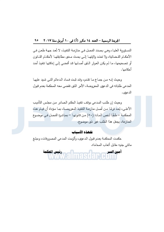 نشرت الجريدة الرسمية، اليوم الأحد، بالعدد 14 أ مكرر، 13 حكما للمحكمة الدستورية العليا، منها 9 أحكام في قضايا دستورية، و3 أحكام في قضايا تنفيذ، وحكمًا واحدًا في قضية تنفيذ أحكام.