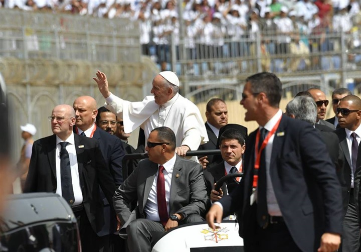 يترأس قداسة البابا فرنسيس بابا الكنيسة الكاثوليكية ورئيس دولة الفاتيكان، اليوم السبت، القداس الإلهي بالقرية الأوليمبية باستاد الدفاع الجوي، بمشاركة الست طوائف الكاثوليك في مصر، وبحضور 25 ألفا من الأقباط بكافة محافظات الجمهورية.