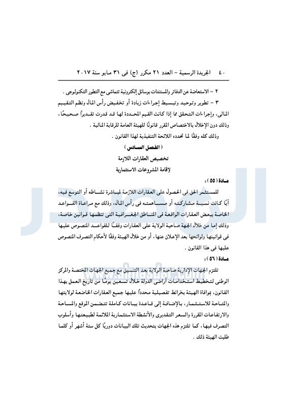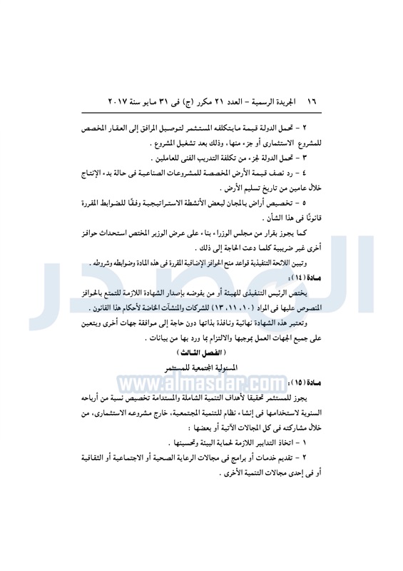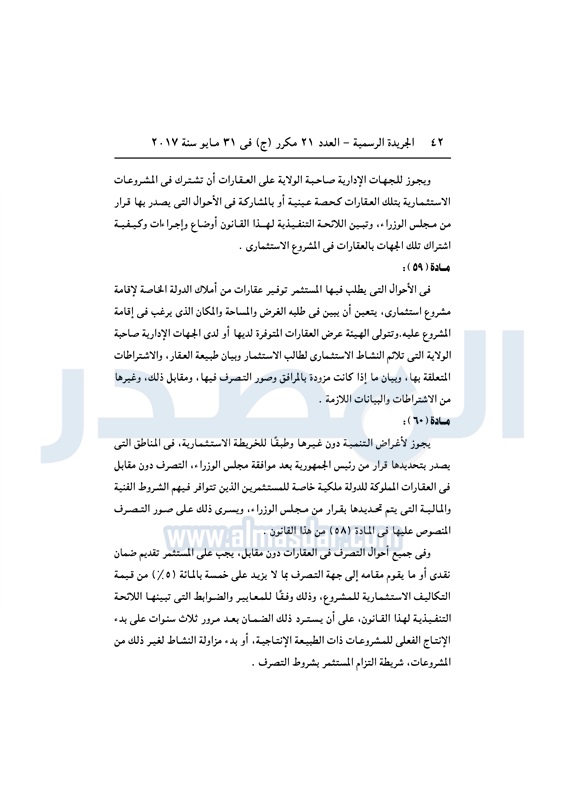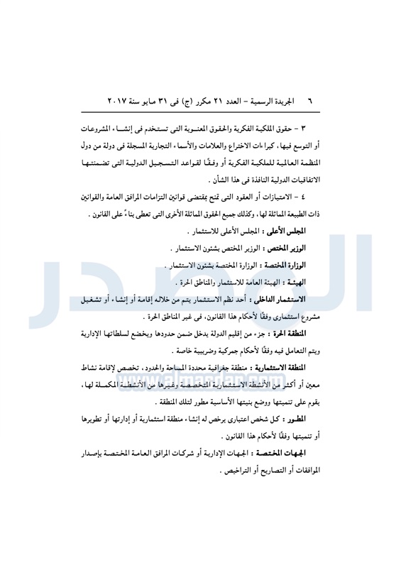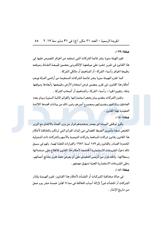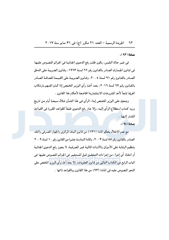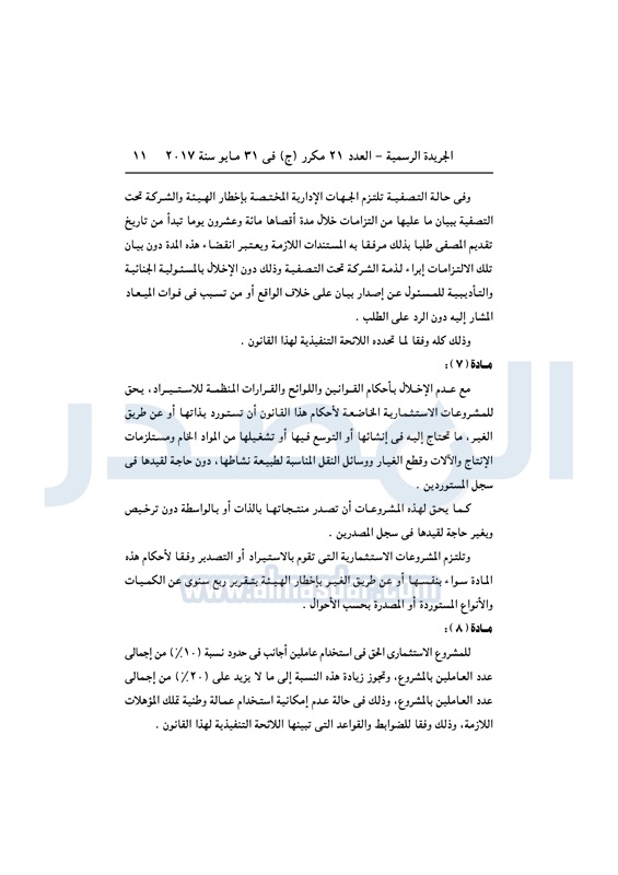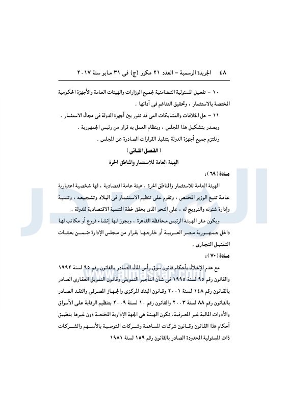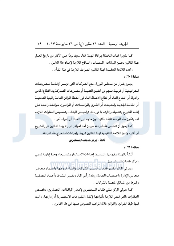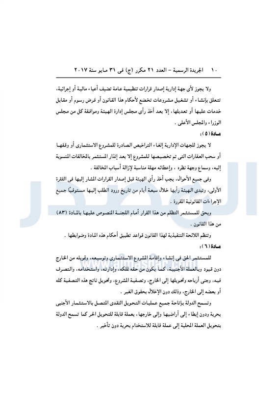 استثمار "المصدر" تنشر نص قانون الاستثمار الجديد الجمعة 02 يونيو 2017 - 06:00 م 6/2/2017 6:00:00 PM الهيئة العامة للاستثمار المصدر - خاص طباعة شارك نشرت الجريدة الرسمية، في العدد رقم 21 مكرر "ج"، الصادر في 31 مايو 2017، قرار الرئيس عبدالفتاح السيسي، باصدار قانون الاستثمار.لقراءة نص القانون: طباعة شارك قانون الاستثمار السيسى الجريدة الرسمية تابع المصدر علي جوجل نيوز تطبيق نبض