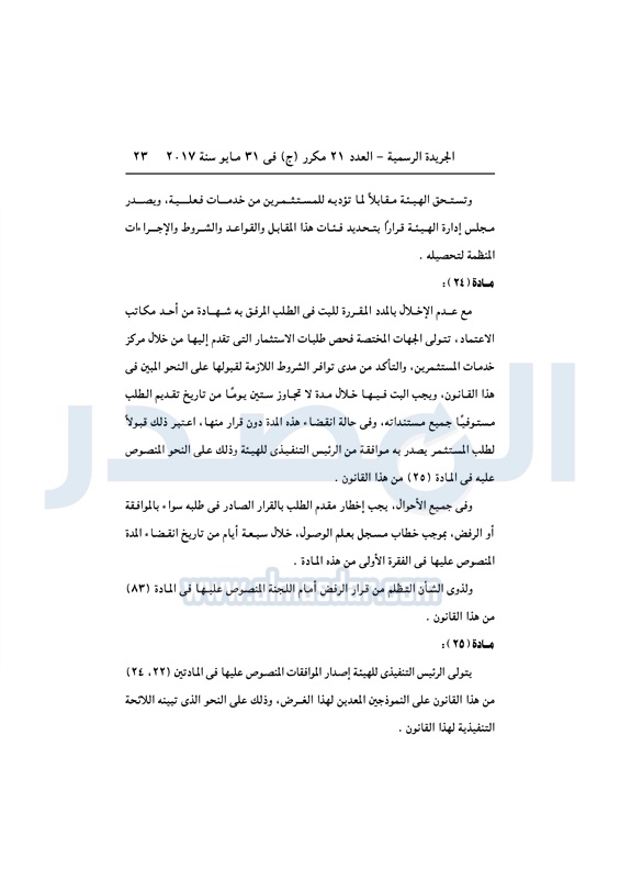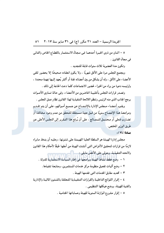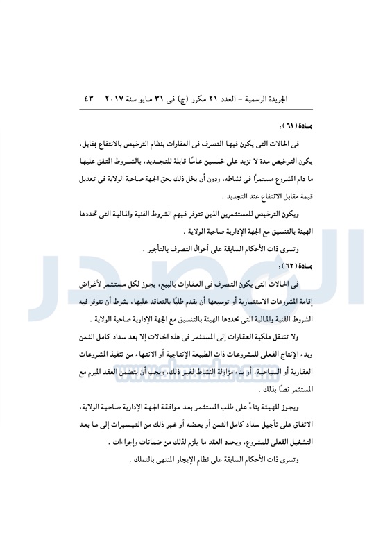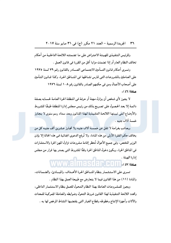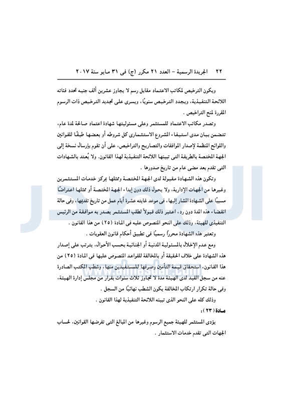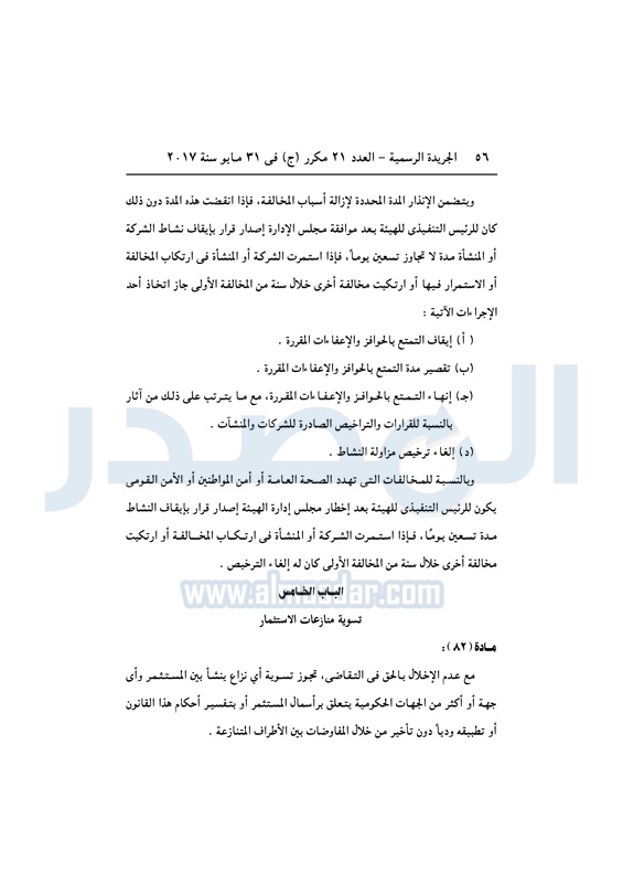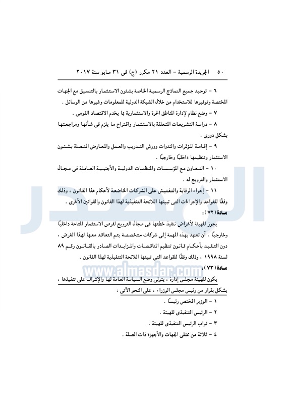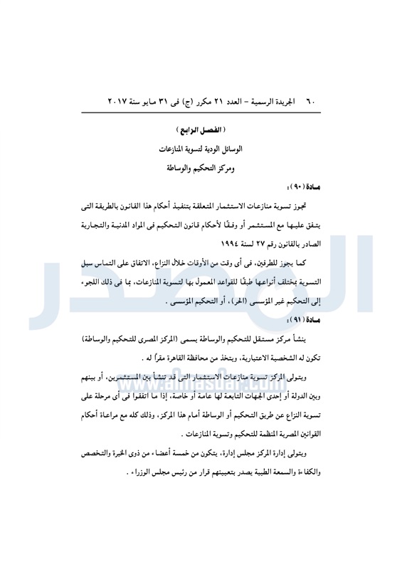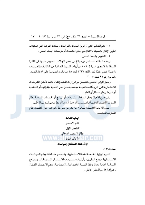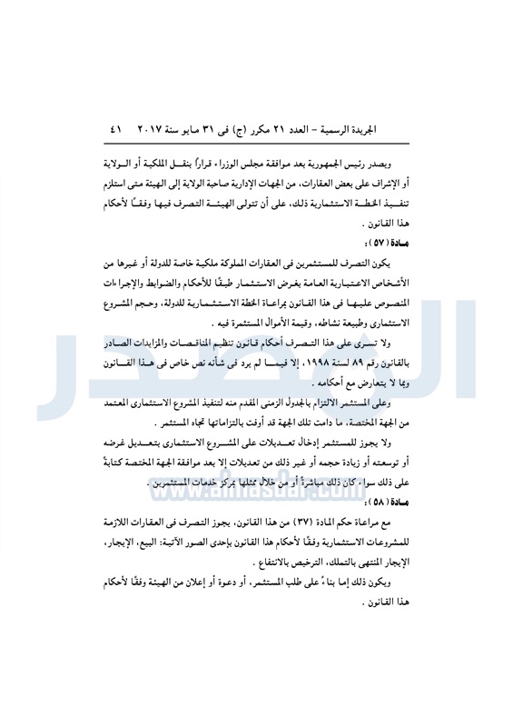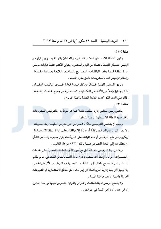استثمار "المصدر" تنشر نص قانون الاستثمار الجديد الجمعة 02 يونيو 2017 - 06:00 م 6/2/2017 6:00:00 PM الهيئة العامة للاستثمار المصدر - خاص طباعة شارك نشرت الجريدة الرسمية، في العدد رقم 21 مكرر "ج"، الصادر في 31 مايو 2017، قرار الرئيس عبدالفتاح السيسي، باصدار قانون الاستثمار.لقراءة نص القانون: طباعة شارك قانون الاستثمار السيسى الجريدة الرسمية تابع المصدر علي جوجل نيوز تطبيق نبض