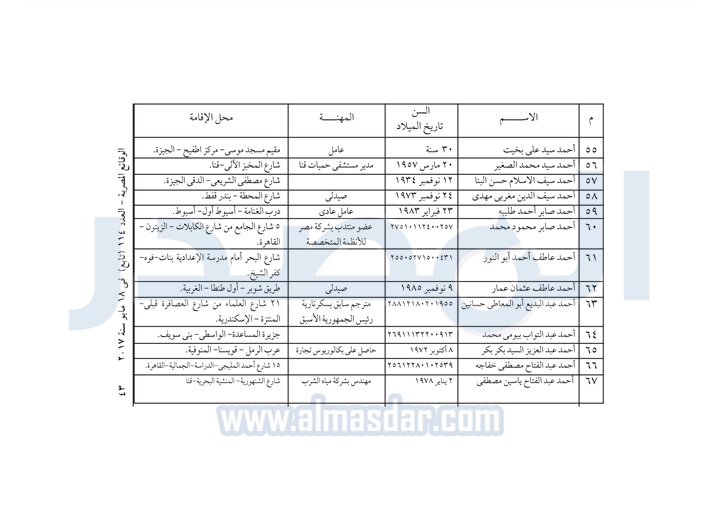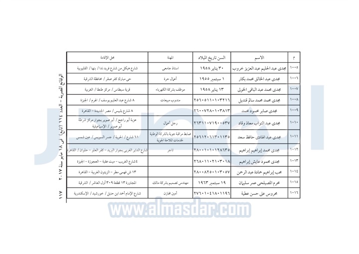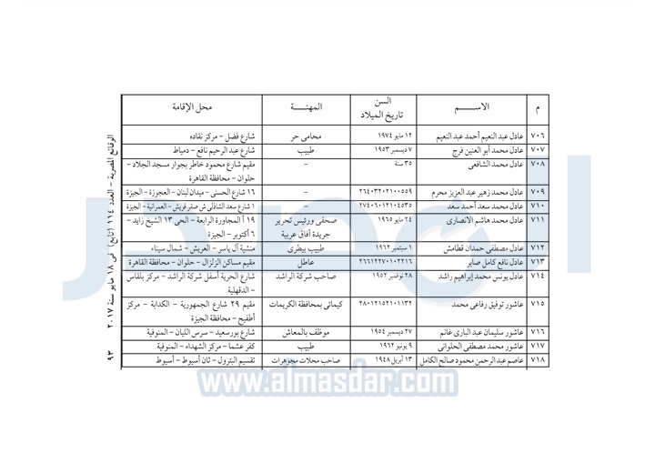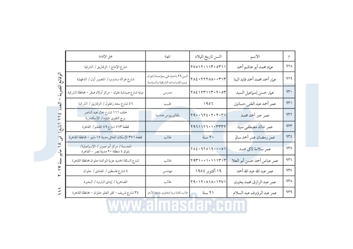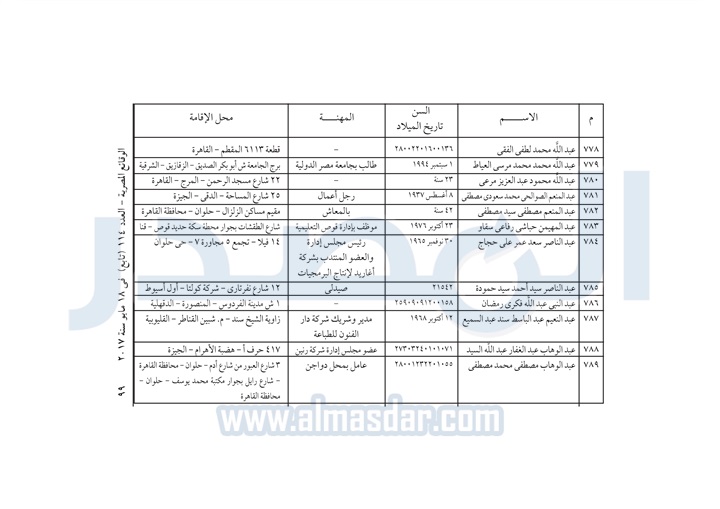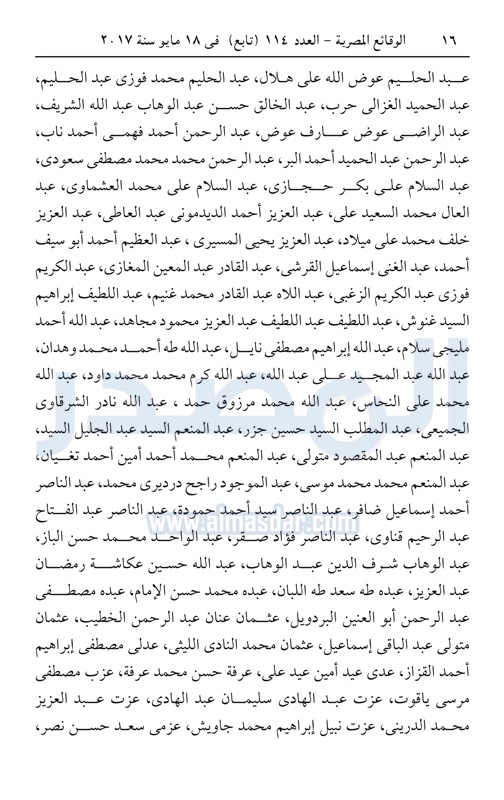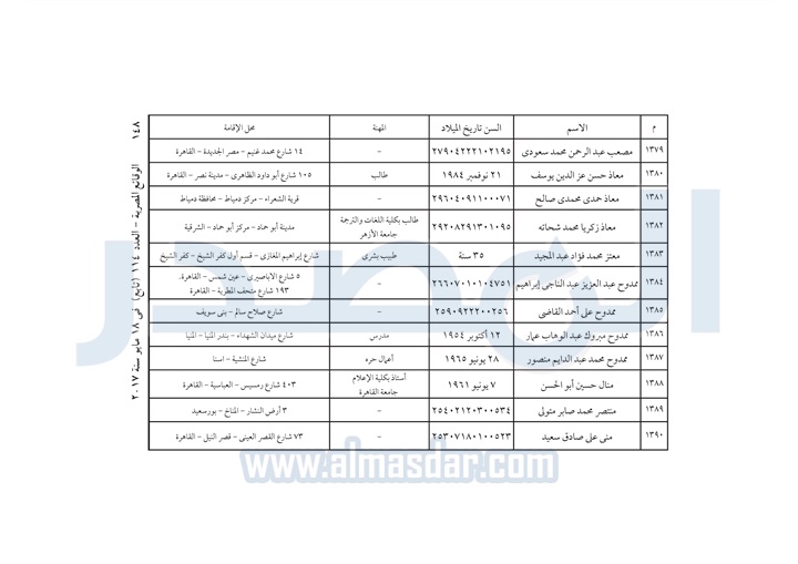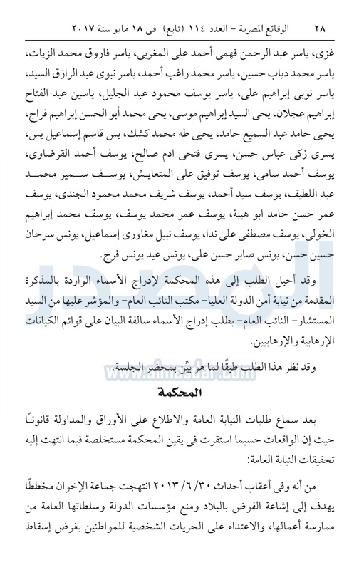 نشرت الجريدة الوقائع المصرية في عددها رقم 114 تابع، الصادر في 18 مايو لعام 2017، القانون رقم 72 لسنة 2017، قرار محكمة جنايات القاهرة الدائرة السادسة شمال، والذي ينص في العريضة رقم 5 لسنة 2017 قوائم بأسماء الكيانات الإرهابية، في القضية رقم 653 لسنة 2014، حصر أمن دولة عليا.