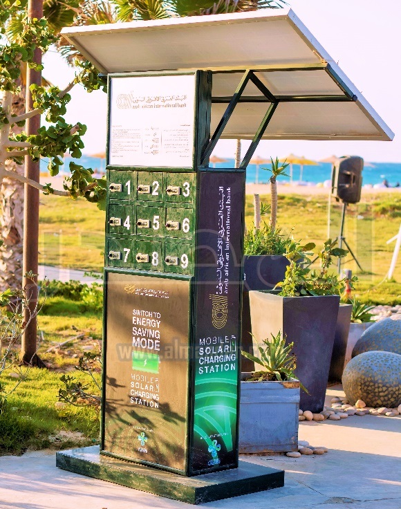 قدم البنك العربى الافريقى الدولى اول مجموعة من وحدات شحن الهواتف المحمولة بالطاقة الشمسية ،الذى يعد النموذج الأول من نوعه في مصر ،لاحد شباب رواد الاعمال المصريين.