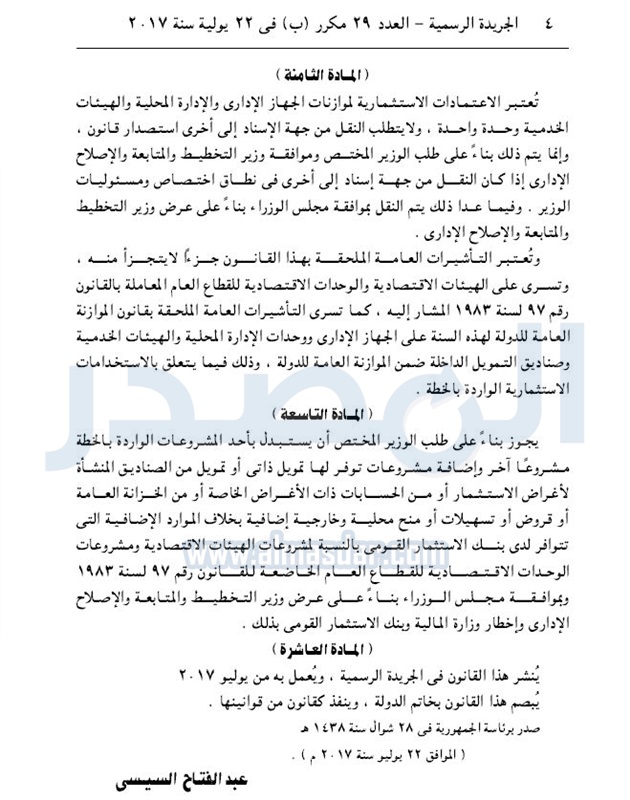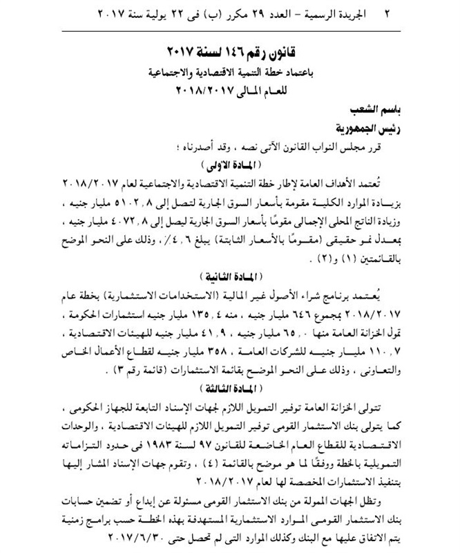 ننشر اعتماد خطة التنمية الاقتصادية والاجتماعية لعام 2017 / 2018 الأحد 06 أغسطس 2017 - 01:00 م 8/6/2017 1:00:00 PM مجلس النواب - صورة أرشيفية المصدر - خاص طباعة شارك نشرت الجريدة الرسمية في العدد 29 مكرر (ب) قانون رقم 146 لسنة 2017 باعتماد خطة التنمية الاقتصادية والاجتماعية للعام المالي 2017 / 2018.لقراءة القرار: طباعة شارك مجلس النواب خطة التنمية السيسى الحكومة الجريدة الرسمية أخبار مصر تابع المصدر علي جوجل نيوز تطبيق نبض