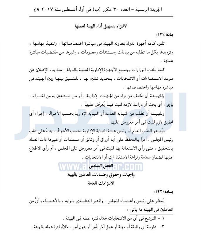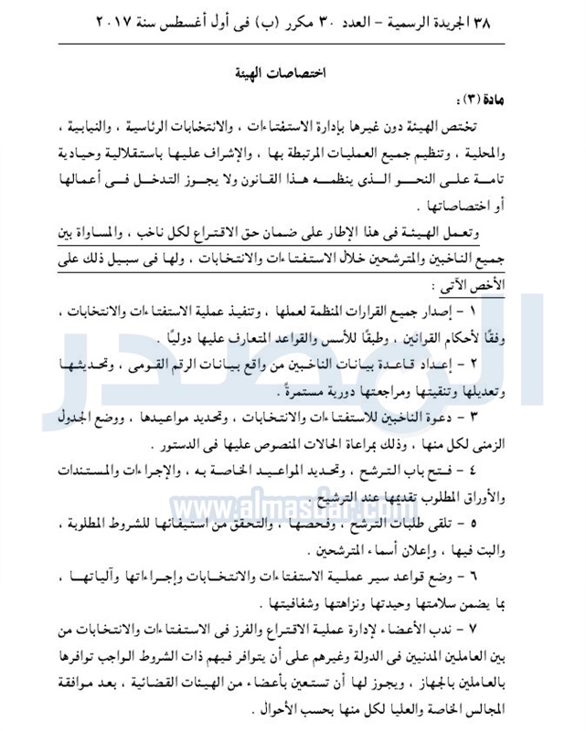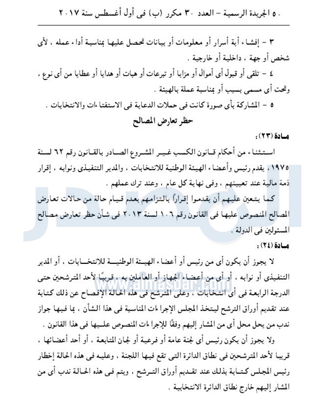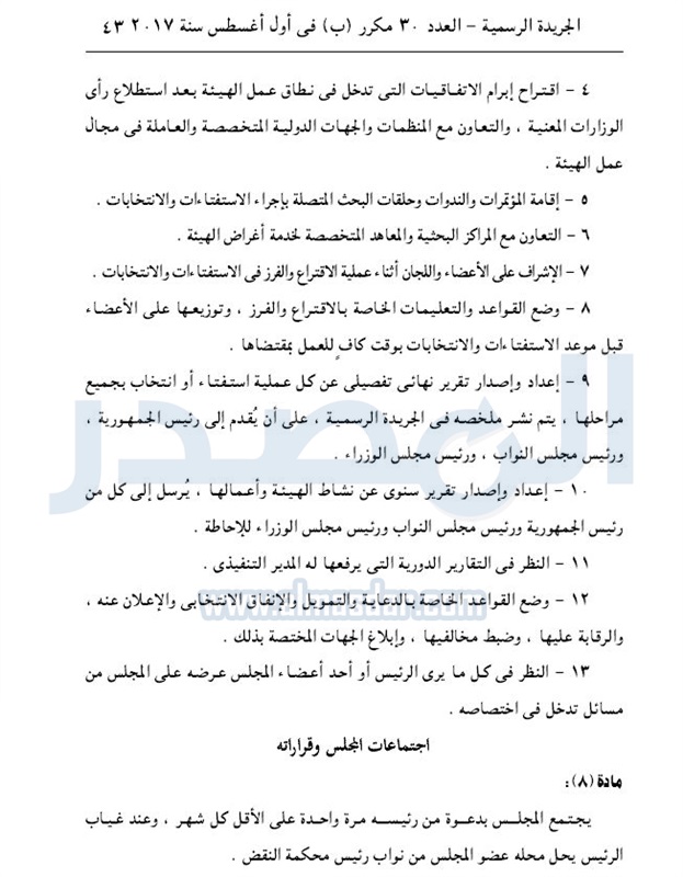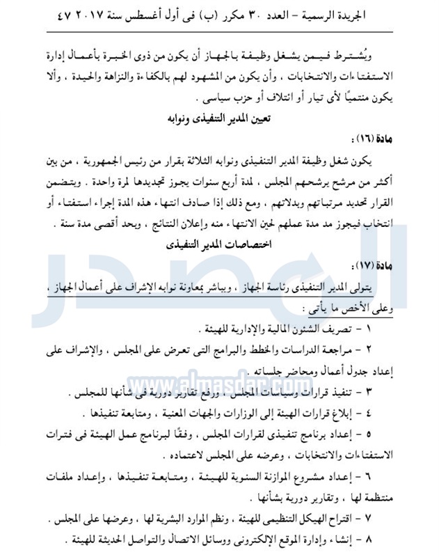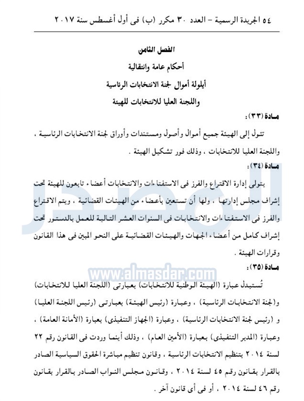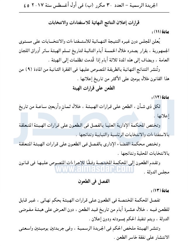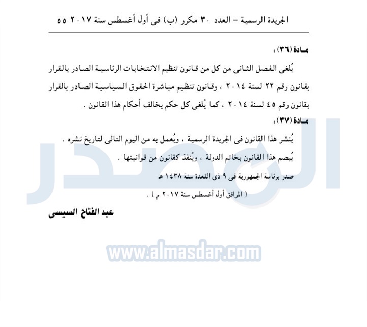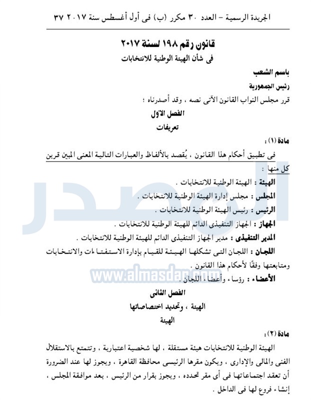 أخبار مصر السيسي يصدق على قانون الهيئة الوطنية للانتخابات (نص القرار) الإثنين 07 أغسطس 2017 - 01:28 م 8/7/2017 1:28:00 PM الرئيس عبد الفتاح السيسي المصدر - خاص طباعة شارك صدق الرئيس عبد الفتاح السيسي على القانون رقم 198 لسنة 2017 فى شأن الهيئة الوطنية للانتخابات، الذى سبق أن أصدره مجلس النواب خلال دور الانعقاد السابق.لقراءة القرار: طباعة شارك مجلس النواب الهيئة الوطنية للإنتخابات السيسى أخبار مصر تابع المصدر علي جوجل نيوز تطبيق نبض
