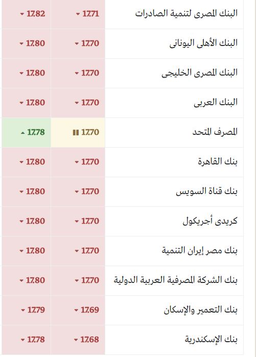 انخفض سعر الدولار الأمريكي أمام الجنيه المصري، اليوم الثلاثاء، عند مستوى 17,73 جنيه للشراء، و17,83 جنيه للبيع، كما انخفض سعر اليورو إلى 20,95 للشراء، 21,02 للبيع.