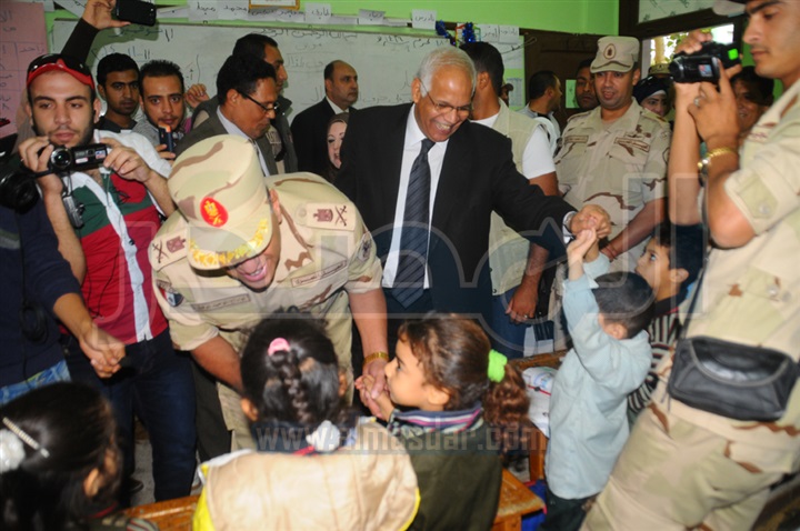 رافقه المحافظ بالجولة اللواء توفيق توحيد قائد المنطقة المركزية العسكرية والاستاذة فاطمة خضر مدير مديرية التربية والتعليم بالقاهرة ورؤساء الأحياء المعنيين بالزيارة .
