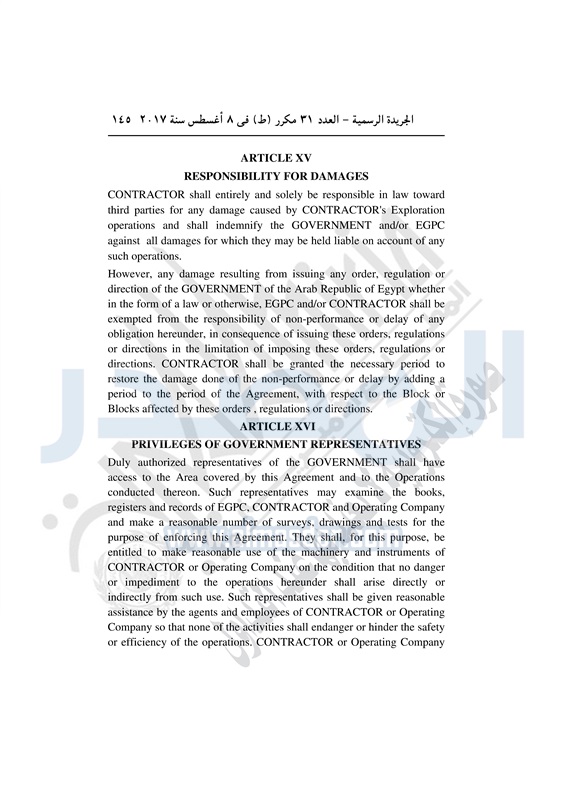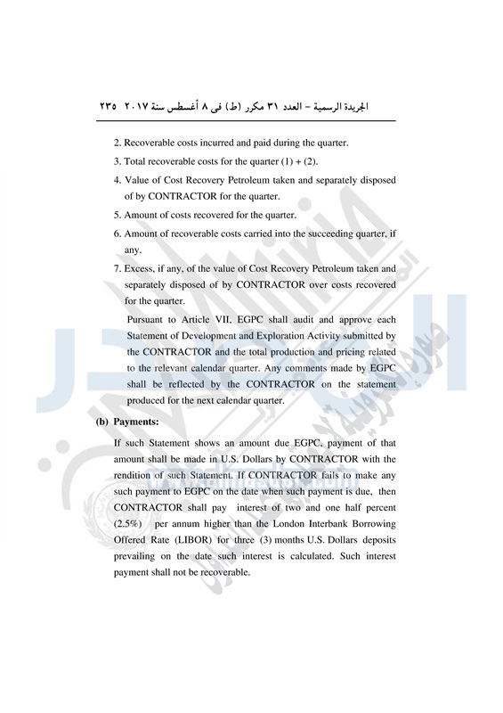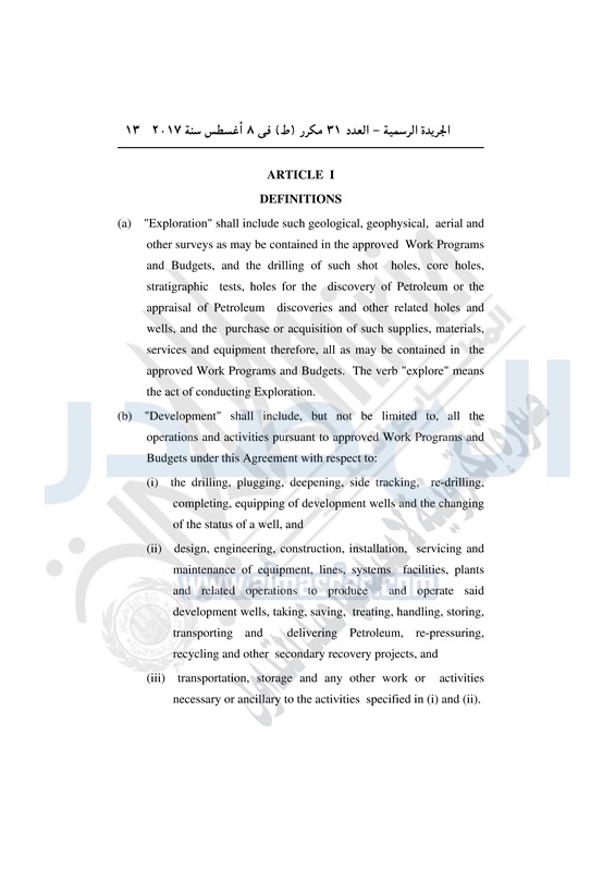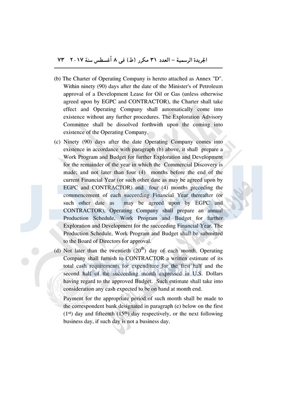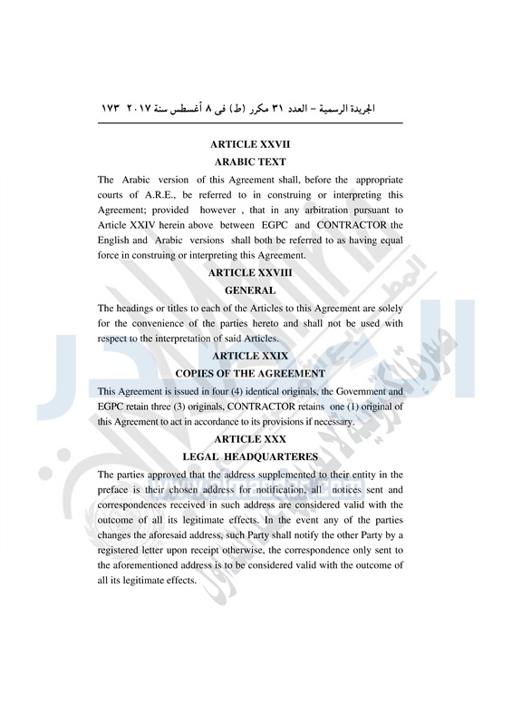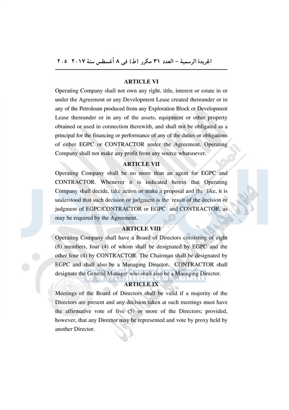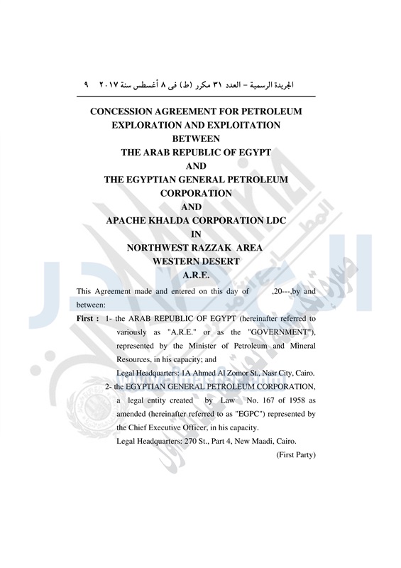 نشرت الجريدة الرسمية في العدد رقم 31 مكرر "ط" الصادر بتاريخ 8 أغسطس 2017 نص القانون رقم 205 لسنة 2017 بالترخيص لوزير البترول بالتعاقد مع الهيئة المصرية العامة للبترول وشركة أباتشي خالدة كوربوريشن ال دي سي للبحث عن البترول واستغلاله في منطقة شمال غرب الرزاق بالصحراء الغربية.