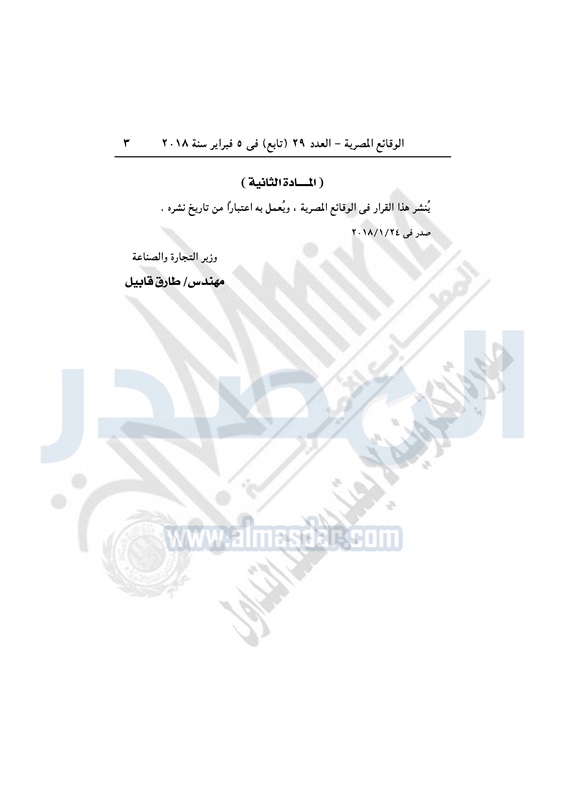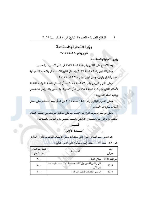 أسواق وزارة التجارة والصناعة تعدل رسوم تصدير بعض الأصناف الإثنين 05 فبراير 2018 - 08:42 م 2/5/2018 8:42:00 PM طارق قابيل - وزير الصناعة والتجارة الخارجية المصدر - خاص طباعة شارك نشرت الوقائع المصرية في العدد رقم 29 تابع الصادر بتاريخ 5 فبراير 2018 قرار وزارة التجارة والصناعة رقم 50 لسنة 2018 بشأن تعديل رسم الصادر المقرر على صادرات بعض الأصناف.وفيما يلي نص القرار: طباعة شارك وزاره التجاره والصناعه طارق قابيبل الوقائع المصرية الرسوم التصدير تابع المصدر علي جوجل نيوز تطبيق نبض