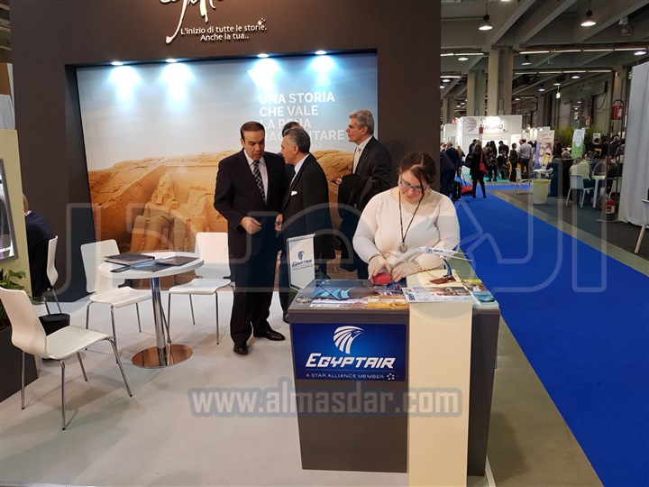 "مصر للطيران" تشارك بجناح ضخم في بورصة ميلانو للسياحية (صور)