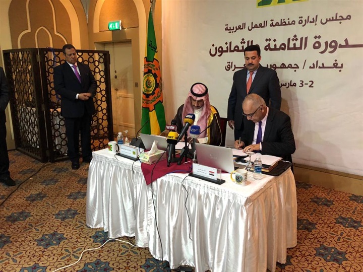 ووقعت برتوكولات التعاون الثنائية الخاصة بمشروع الشبكة العربية لمعلومات أسواق العمل الذي تنفذه منظمة العمل العربية مع ستار دنبوس براك، رئيس الاتحاد العام لنقابات عمال العراق، وعلي صبيح علي الساعدي، رئيس اتحاد الصناعات العراقي.
