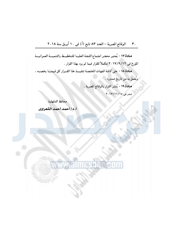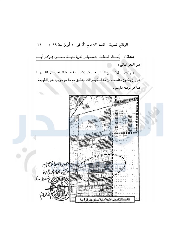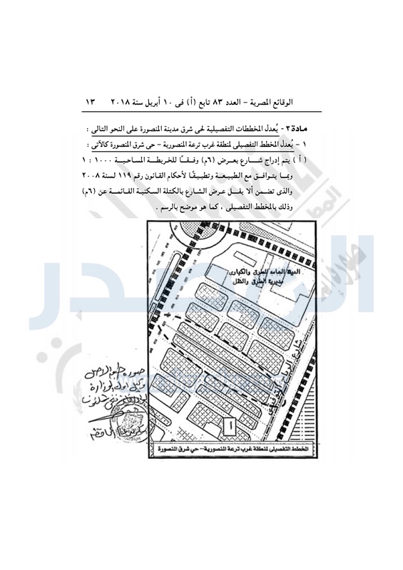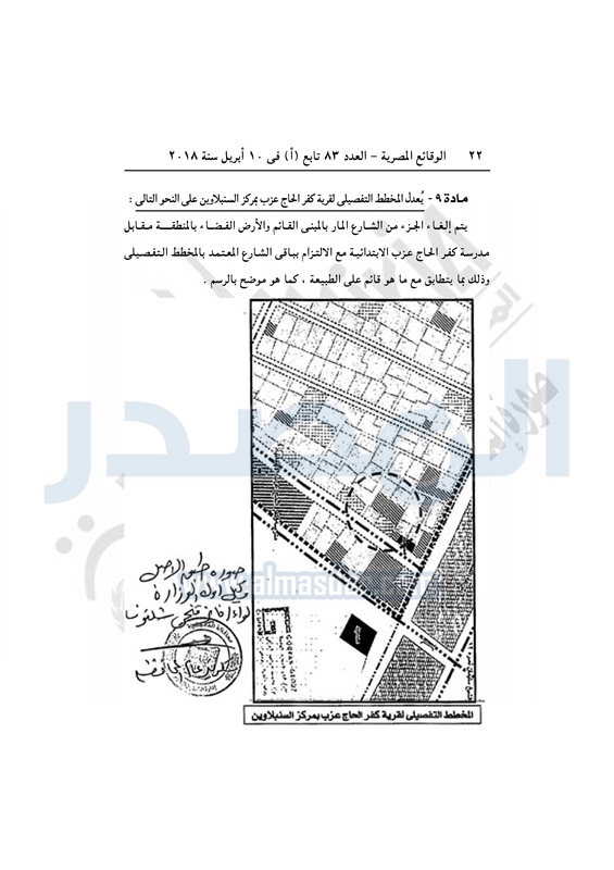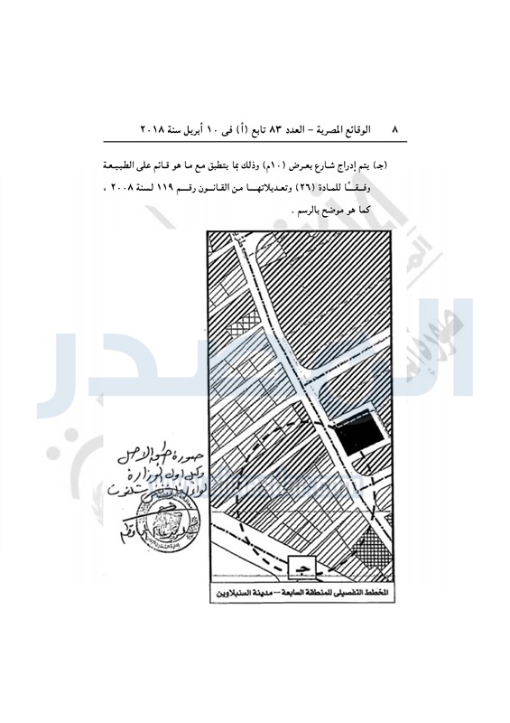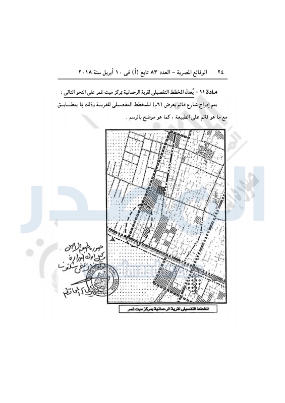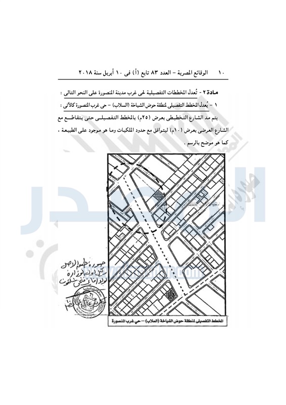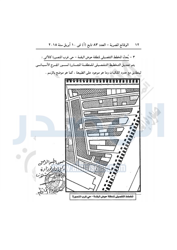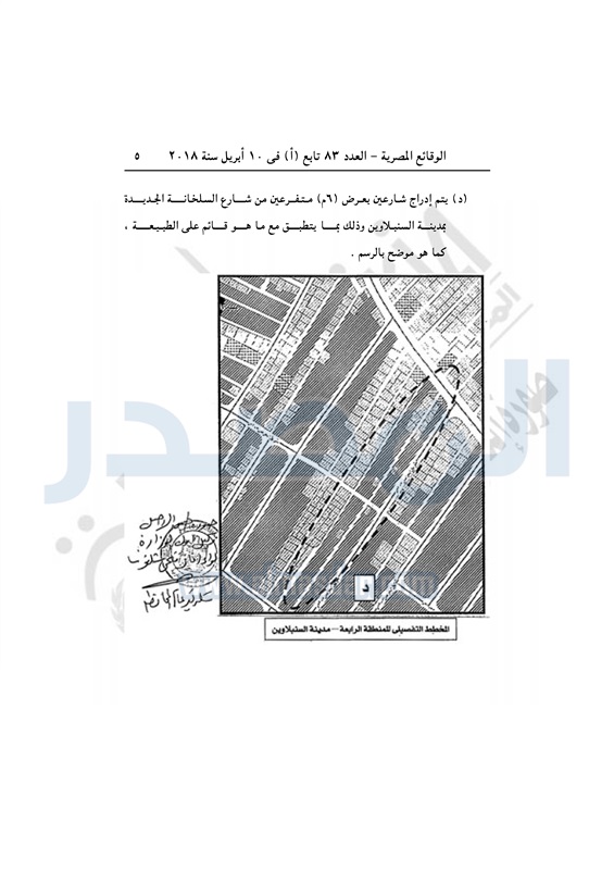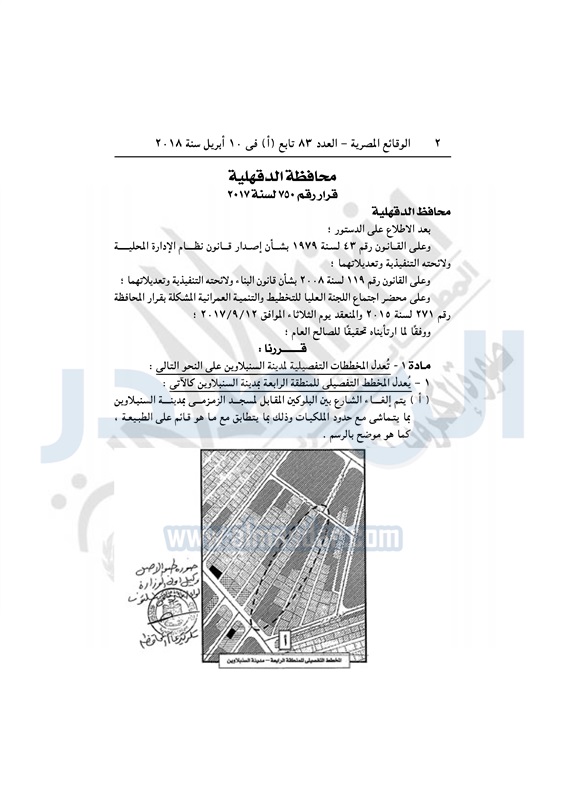 نشرت الوقائع المصرية في العدد رقم 83 تابع "أ" الصادر بتاريخ 10 إبريل لسنة 2018 قرار محافظة الدقهلية رقم 750 لسنة 2017 بتعديل المخططات التفصيلية لمدينة السنبلاوين.