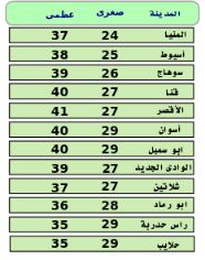 وفيما يلى بيان بدرجات الحرارة المتوقعة غدا على محافظات ومدن مصر: