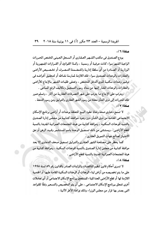 عقارات رسميا.. إصدار قانون الإسكان الاجتماعى ودعم التمويل العقارى الأحد 24 يونيو 2018 - 03:07 م 6/24/2018 3:07:00 PM صورة أرشيفية المصدر - خاص طباعة شارك نشرت الجريدة الرسمية في العدد رقم 23 مكرر "أ" الصادر بتاريخ 11 يونبه 2018، قانون رقم 93 لسنة 2018 بإصدار قانون الإسكان الاجتماعي ودعم التمويل العقاري.وفيما يلي نص القرار: طباعة شارك وزارة الاسكان قانون الاسكان الحكومة التمويل العقاري تابع المصدر علي جوجل نيوز تطبيق نبض