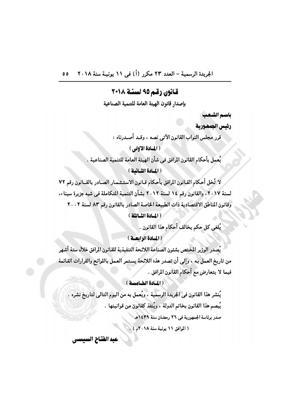 أخبار مصر ننشر قرار باختصاصات هيئة التنمية الصناعية الأحد 24 يونيو 2018 - 03:18 م 6/24/2018 3:18:00 PM المصدر - خاص طباعة شارك نشرت الجريدة الرسمية في العدد رقم 23 مكرر "أ" الصادر بتاريخ 11 يونبه 2018، قانون رقم 95 لسنة 2018 بإصدار قانون الهيئة العامة للتنمية الصناعية.وفيما يلي نص القرار: طباعة شارك وزارة الصناعة الحكومة التنمية الصناعية الإستثمار تابع المصدر علي جوجل نيوز تطبيق نبض