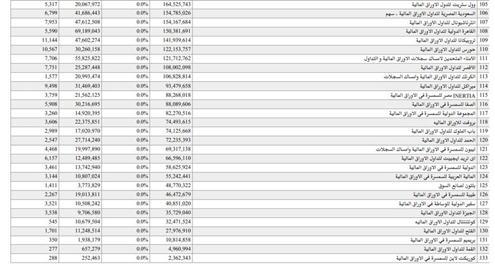 وحلت شركة المجموعة المالية للسمسرة، ثانيًا في قائمة الترتيب ،من خلال تحقيق قيم تداول بلغت 41,230 مليار جنيه، فيما جاءت شركة هيرميس للوساطة الأوراق المالية، ثالثًا في القائمة بقيم تداول بلغت31,111 مليار جنيه.