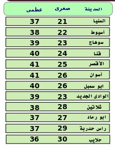 وفيما يلي بيان بدرجات الحرارة المتوقعة غدا على محافظات ومدن مصر: