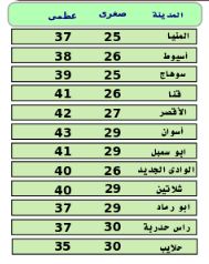 وفيما يلى بيان بدرجات الحرارة المتوقعة غدا على محافظات ومدن مصر: