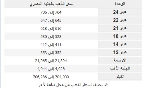 وفيما يلى بيان بأسعار الذهب اليوم: