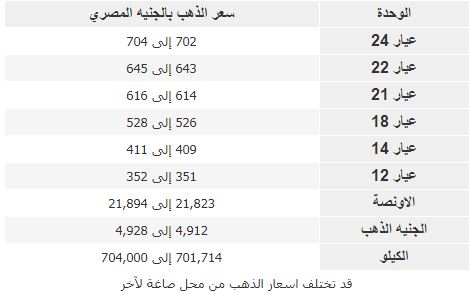 وفيما يلى بيان بأسعار الذهب اليوم: