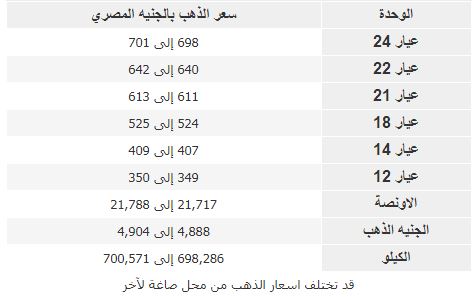 وفيما يلى بيان بأسعار الذهب اليوم: