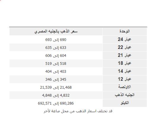 وفيما يلى بيان بأسعار الذهب اليوم:
