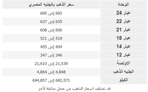 وفيما يلى بيان بأسعار الذهب اليوم: