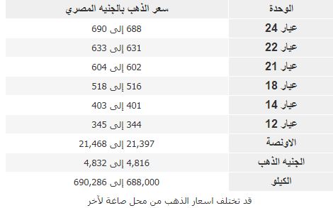 وفيما يلى بيان بأسعار الذهب اليوم: