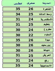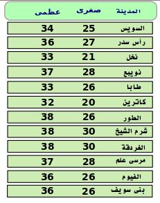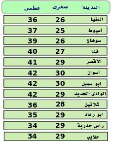 وفيما يلي بيان بدرجات الحرارة المتوقعة غدًا على مدن ومحافظات مصر:
