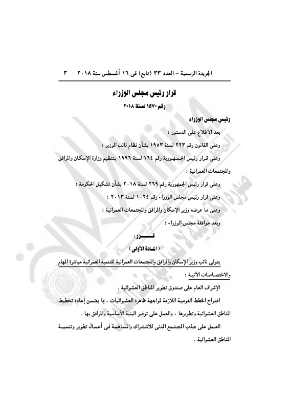أخبار مصر "مدبولى" يفوض نائب وزير الإسكان ببعض اختصاصاته السبت 18 أغسطس 2018 - 12:43 م 8/18/2018 12:43:09 PM رئيس الوزراء مصطفي مدبولي - صورة أرشيفية المصدر - خاص طباعة شارك نشرت الجريدة الرسمية فى العدد رقم 33 "تابع" بتاريخ 16 أغسطس 2018، قرار رئيس مجلس الوزراء رقم 1571 لسنة 2018.وفيما يلي نص القرار: طباعة شارك تابع المصدر علي جوجل نيوز تطبيق نبض