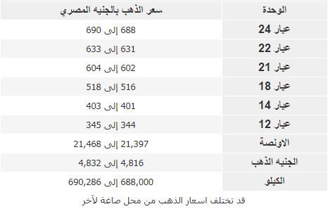 وفيما يلى بيان بأسعار الذهب اليوم: