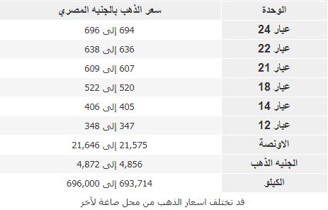 وفيما يلى بيان بأسعار الذهب اليوم: